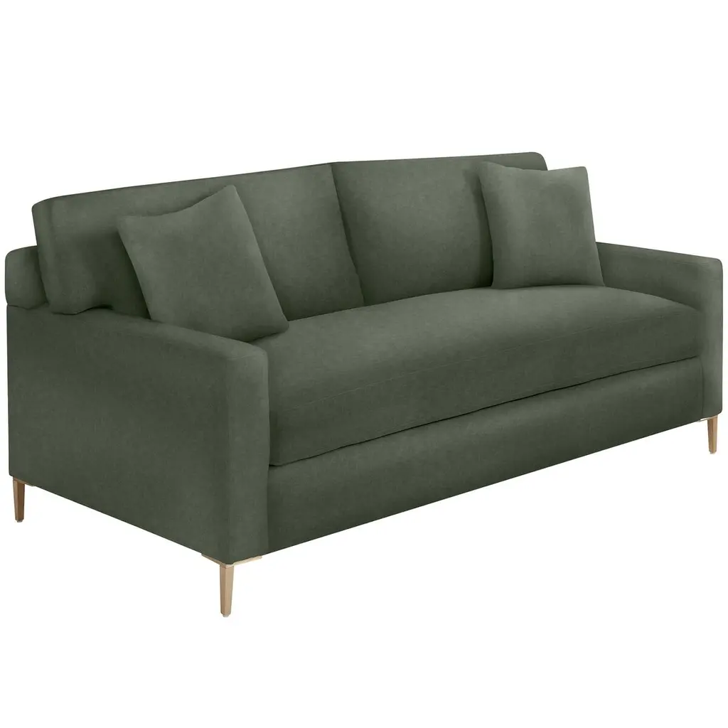 Exclusive to One Kings Lane: Defined by its crisp lines and brass leg design, this stylish loveseat embodies a sleek, Scandinavian-inspired look. It is upholstered in Crypton velvet--an eco-friendly high-performance fabric--which repels stains, spills, bacteria, and mold. Constructed of an engineered hardwood-laminate frame, eight-way hand-tied suspension system, and a spring foam cushion with down-proof ticking ensure long-lasting comfort and support. Each piece is handcrafted by skilled artisans in High Point, NC and offers a lifetime warranty on the frame and suspension system and a limited lifetime warranty on the seat cushion.