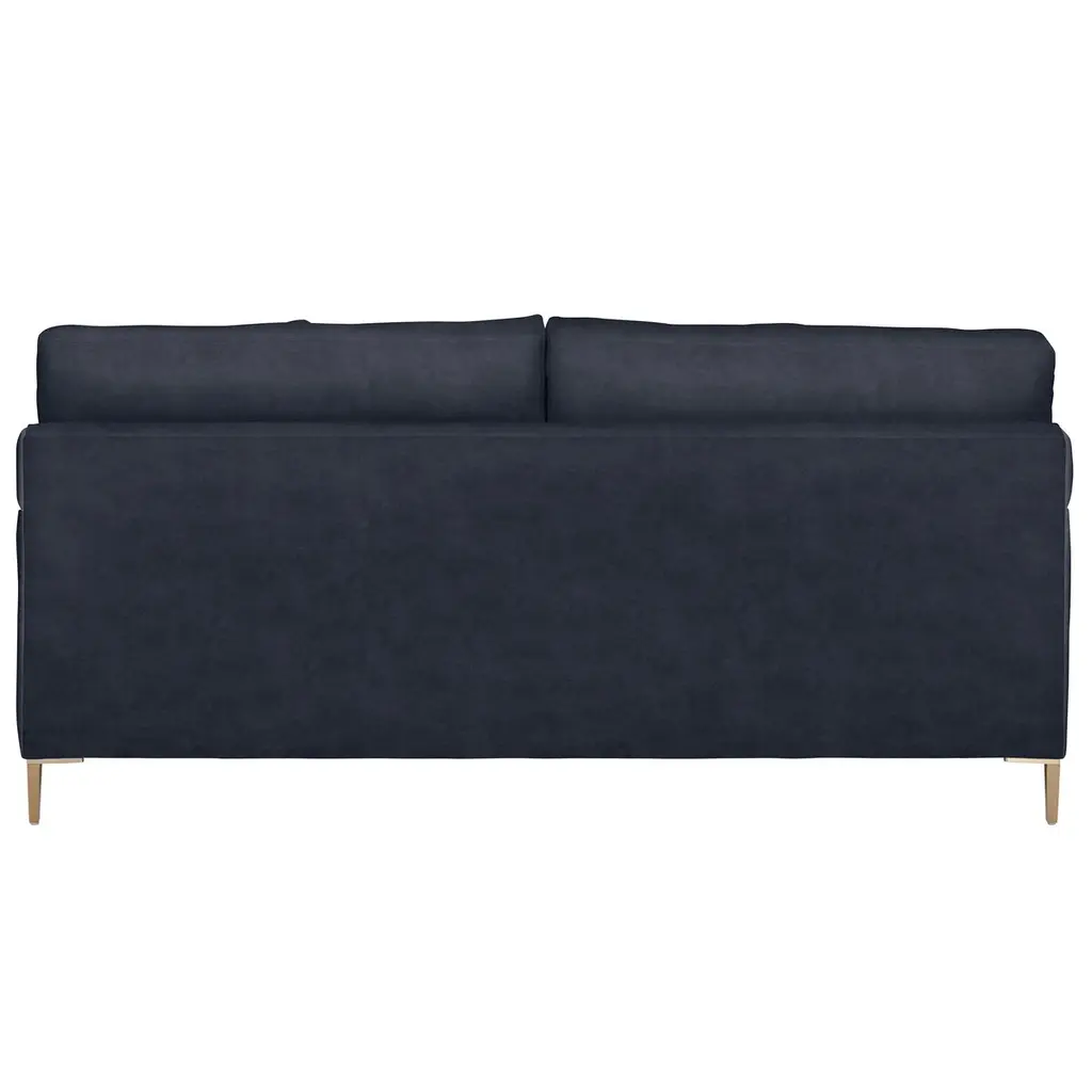 Exclusive to One Kings Lane: Defined by its crisp lines and brass leg design, this stylish loveseat embodies a sleek, Scandinavian-inspired look. It is upholstered in Crypton velvet--an eco-friendly high-performance fabric--which repels stains, spills, bacteria, and mold. Constructed of an engineered hardwood-laminate frame, eight-way hand-tied suspension system, and a spring foam cushion with down-proof ticking ensure long-lasting comfort and support. Each piece is handcrafted by skilled artisans in High Point, NC and offers a lifetime warranty on the frame and suspension system and a limited lifetime warranty on the seat cushion.