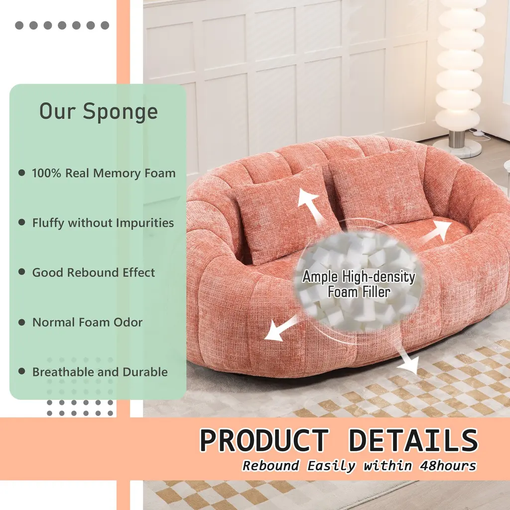 Comfortable and Soft-The material of the bean bag sofa is made of Chenille fabric, which is soft and delicate and has good warmth. Lounge sofa lining using excellent quality memory foam and high elasticity cotton combination, soft material and full filling, both to ensure very good comfort, but also has very good support.The cushions are vacuum-packed. After opening the package, please allow 48 hours to let it come back to its original shape.