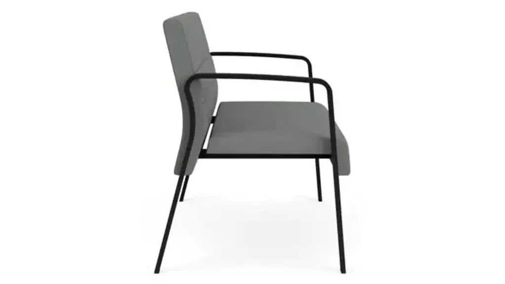 The Waterfall loveseat with leg base, with its soothing yet powerful styling, sloped arm design, and upholstered seat and back cushions will give your space an inviting, welcoming air. Heavy duty steel construction, durable powder-coat finish, ergonominally designed back, and a Matrex seat support system provide long-life comfort in commercial waiting and reception applications. Ideal for medical, educational and healthcare environments. 550 lb weight capacity. Overall Dimensions: 43" W x 25.5" D x 33" H. Ships ready for easy assembly.