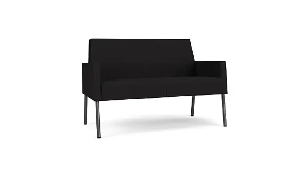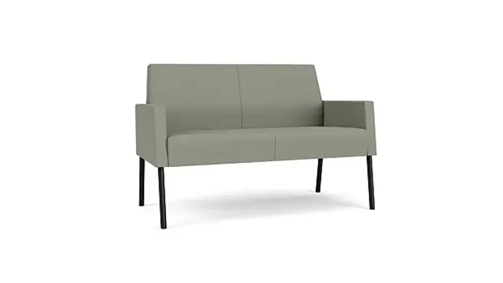 The Mystic Lounge Loveseat with its sophisticated, tailored look, offers the ideal balance of style, function, and value for reception areas, home office and lounge seating applications. Heavy-duty construction with comfortable upholstered cushions and steel legs. Seat features environmentally friendly, durable and comfortable 2.6 density soy based foam, and a Matrex seat support system for long-life sitting comfort. Fully Upholstered panel arms and refined tapered back. Wall-saver design to prevent marks and damage to walls. Designed for high-use reception, lounge and pull-up applications. Steel frame is easy to clean and can withstand years of harsh cleansers. Available in several stain-resistant fabric upholstery options. Ships ready for easy assembly.