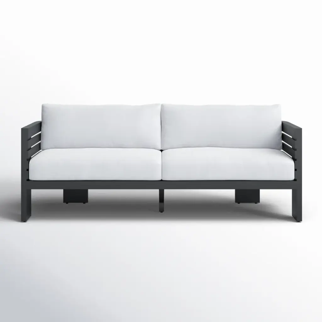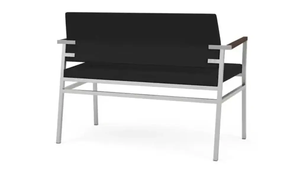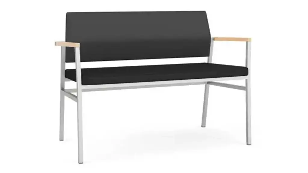 The Avon loveseat with its crisp, modern design, impresses from every angle. Lean against thoughtfully contoured backrests and rest your arms comfortably on solid maple armcaps. Upholstered seat and back. Sturdy steel construction with durable powder coat finish provides years of use. 750 lb weight capacity. Overall Dimensions: 44" W x 23" D x 32" H. Ships ready for easy assembly.