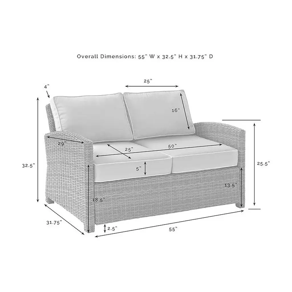 Whether you are lounging solo or entertaining a group, the Bradenton Outdoor Loveseat fits the bill. The sturdy steel frame is wrapped in beautiful all-weather wicker and topped with moisture-resistant cushions. With gently arched arms and deep seating, this two-seat outdoor sofa is made for comfort without sacrificing style. Great on its own or paired with the rest of the Bradenton collection, this loveseat is a perfect addition to your outdoor retreat.