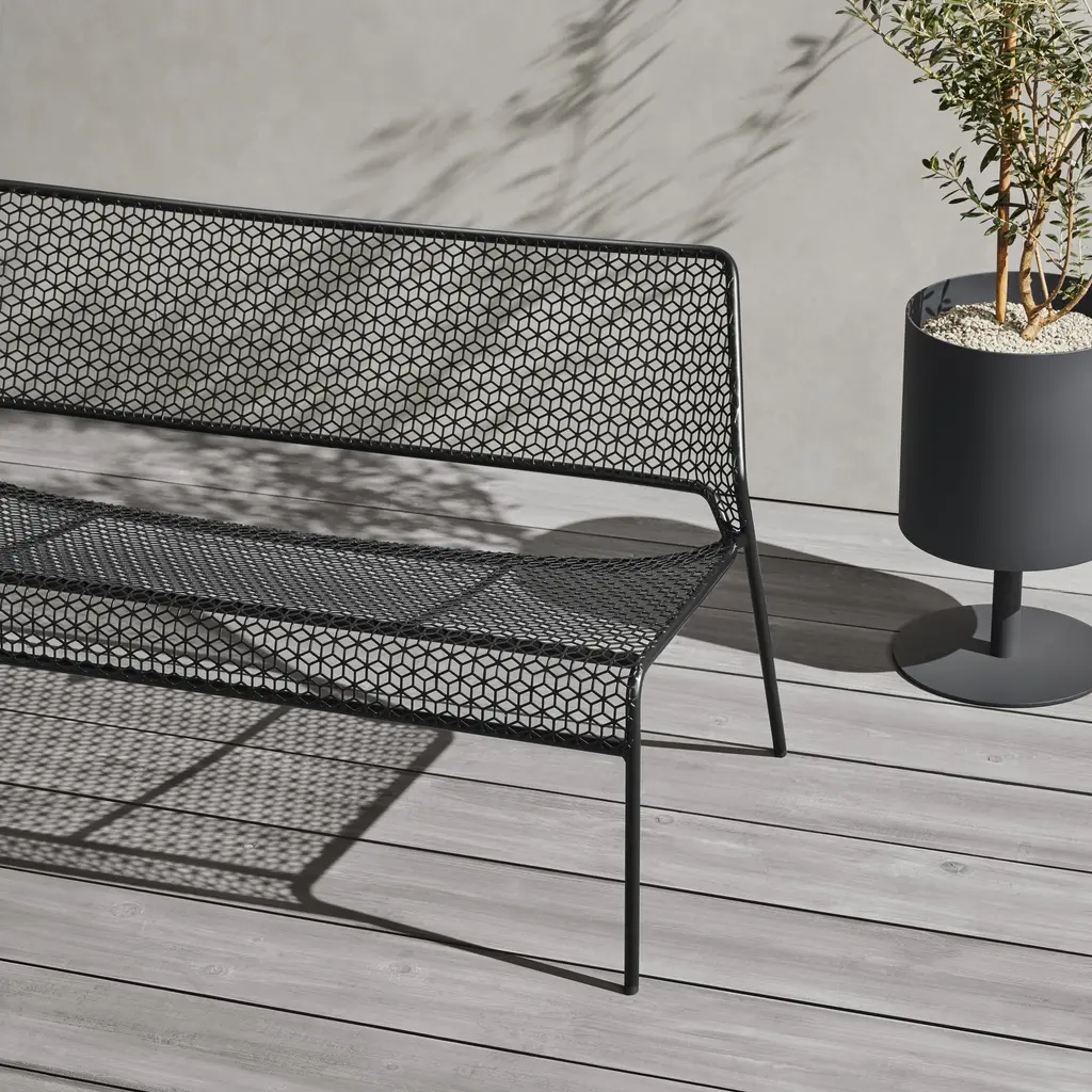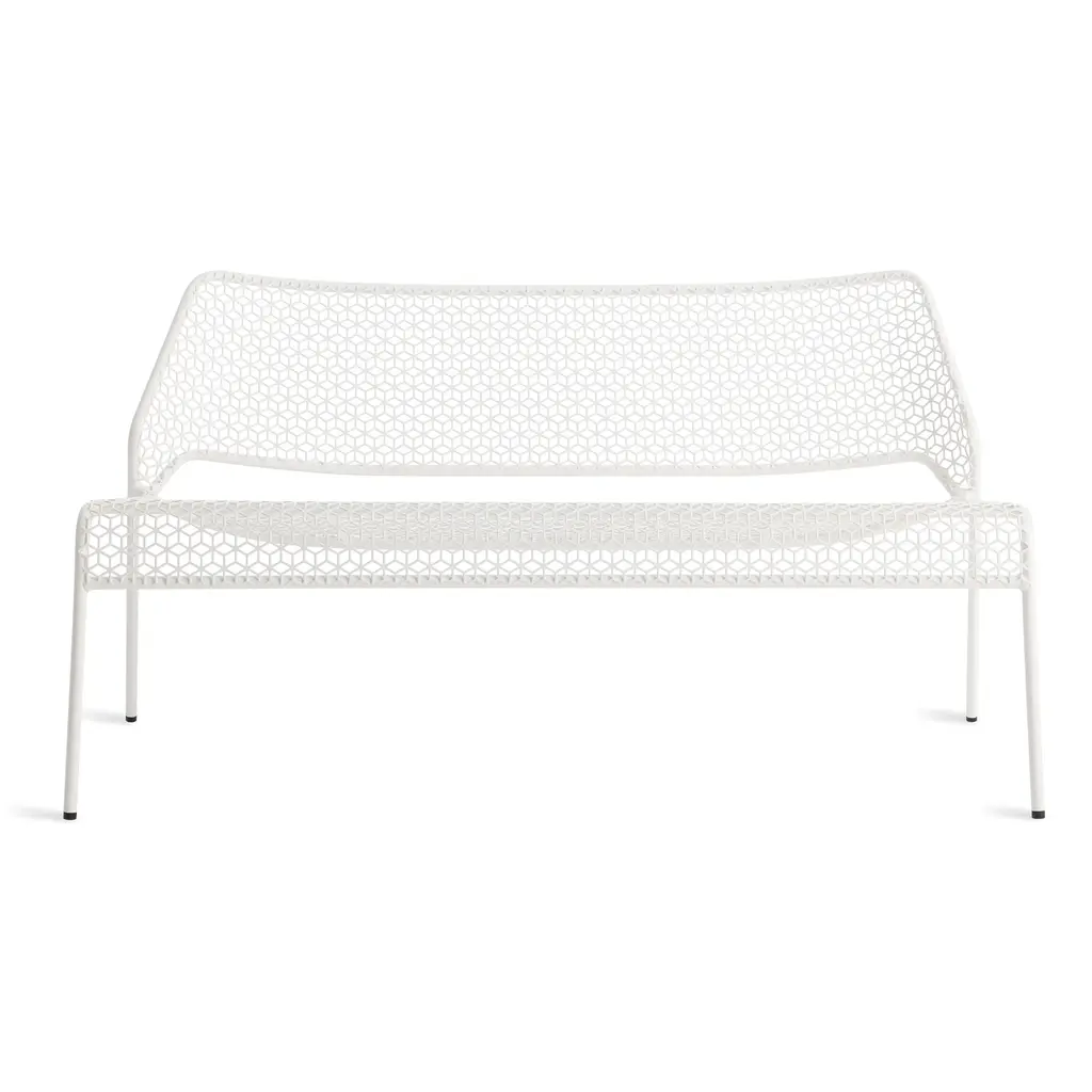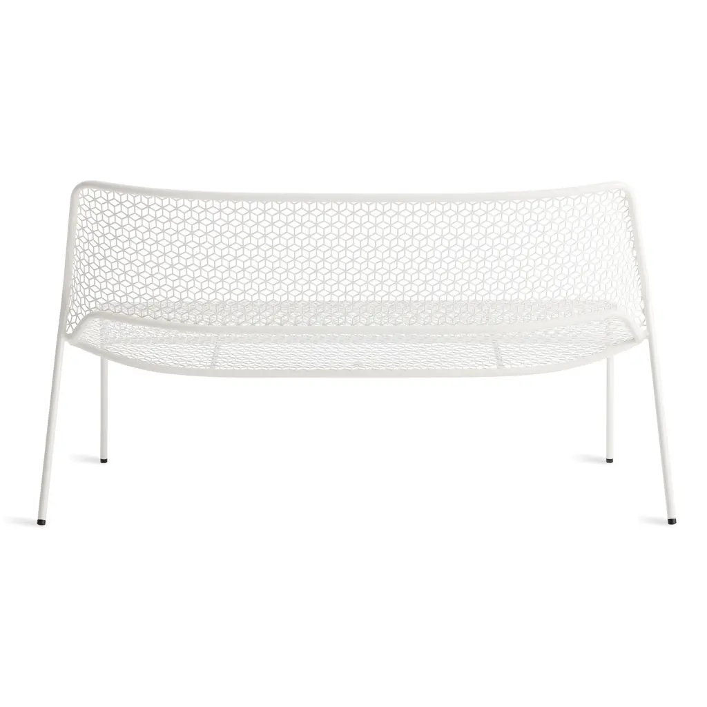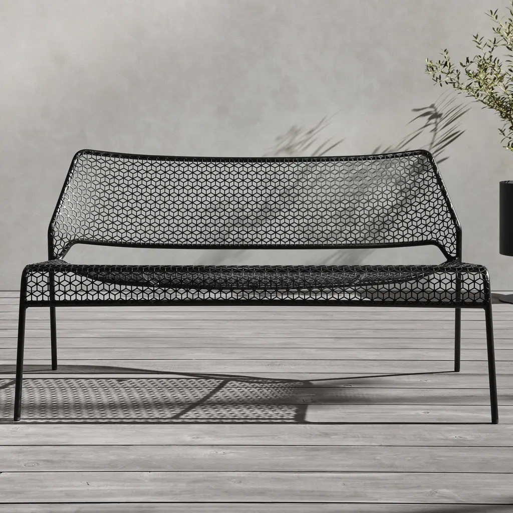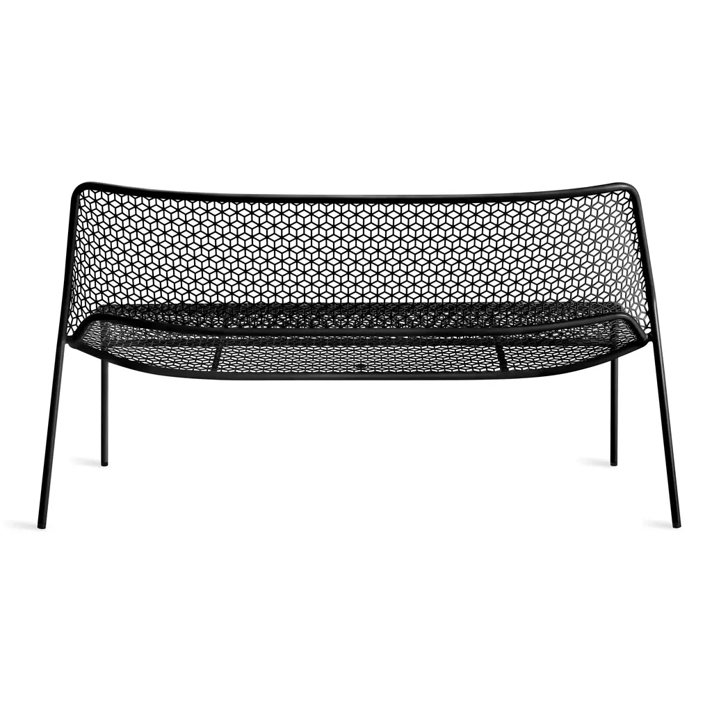 Elevate your seating arrangement with the modern and stylish Hot Mesh Settee by Blu Dot. Its captivating design is guaranteed to catch the eye and enhance any residential or commercial space. Made from punched metal, this settee is not only aesthetically pleasing but also durable enough to withstand harsh weather conditions. Whether you're hosting a party or having a cozy night in, this stackable settee is the perfect seating solution for any occasion.Highlights