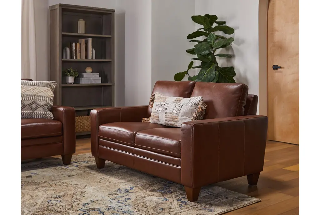 Revel in the natural beauty and luxury of leather with our Hudson collection, which showcases the sought-after material in all its glory. Offering a casual modern look, it features track arms and tapered legs that add clean, streamlined character. Plush cushions feature high-density foam cushions wrapped in Dacron for a balanced experience of comfort and support, while sinuous spring suspension provides a strong seating foundation. Create a complete living room with all four pieces or mix and match for an eclectic effect.