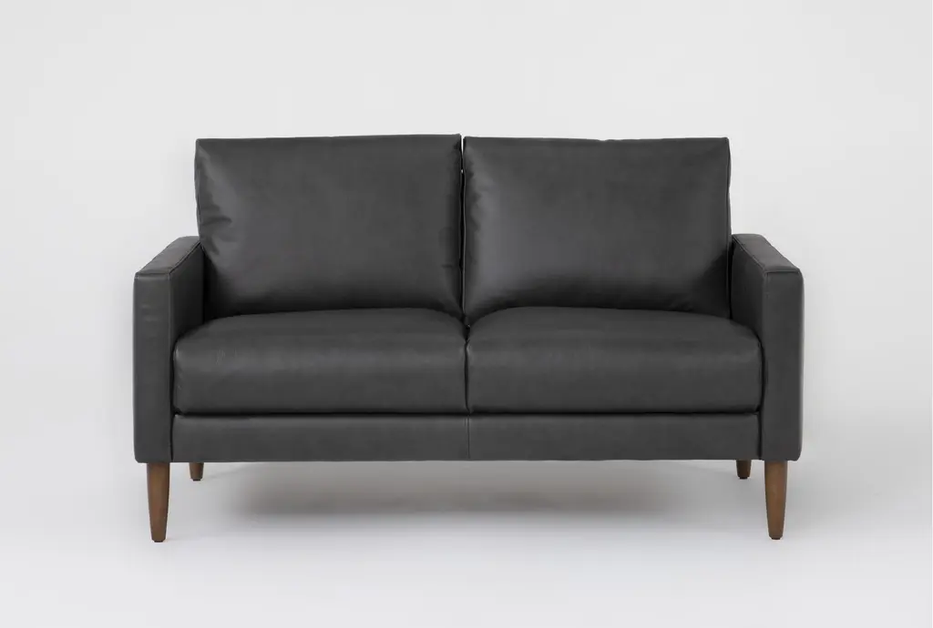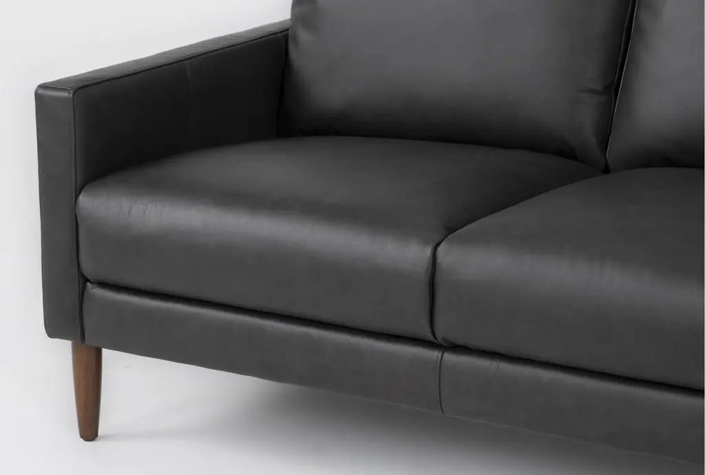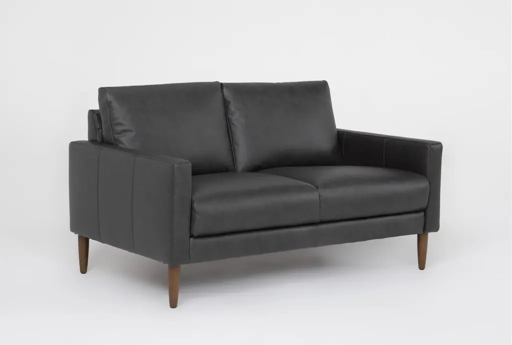 Anyone drawn to modern leather seating will surely find our Ian loveseat exceptionally appealing. Leather graces everywhere your body touches, allowing you to enjoy the look and feel of this naturally beautiful, supple material. Clean and streamlined, it’s scaled down for smaller spaces and is truly on trend with its mid-century modern details. Thin track arms and cone-shaped legs frame plush cushions, which feature a seamless waterfall edge, where the leather wraps completely from back to front. You'll love the grounded color palette, which favors earth tones.