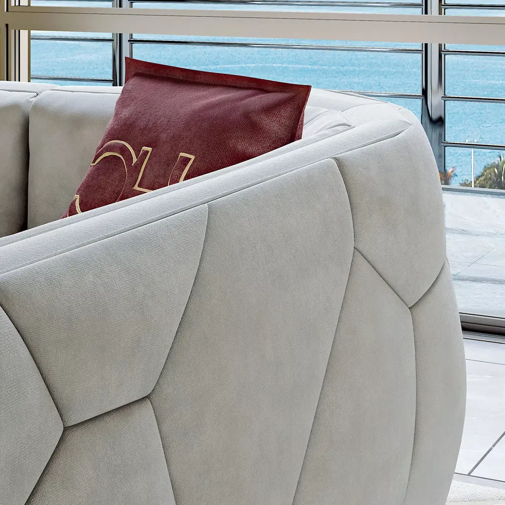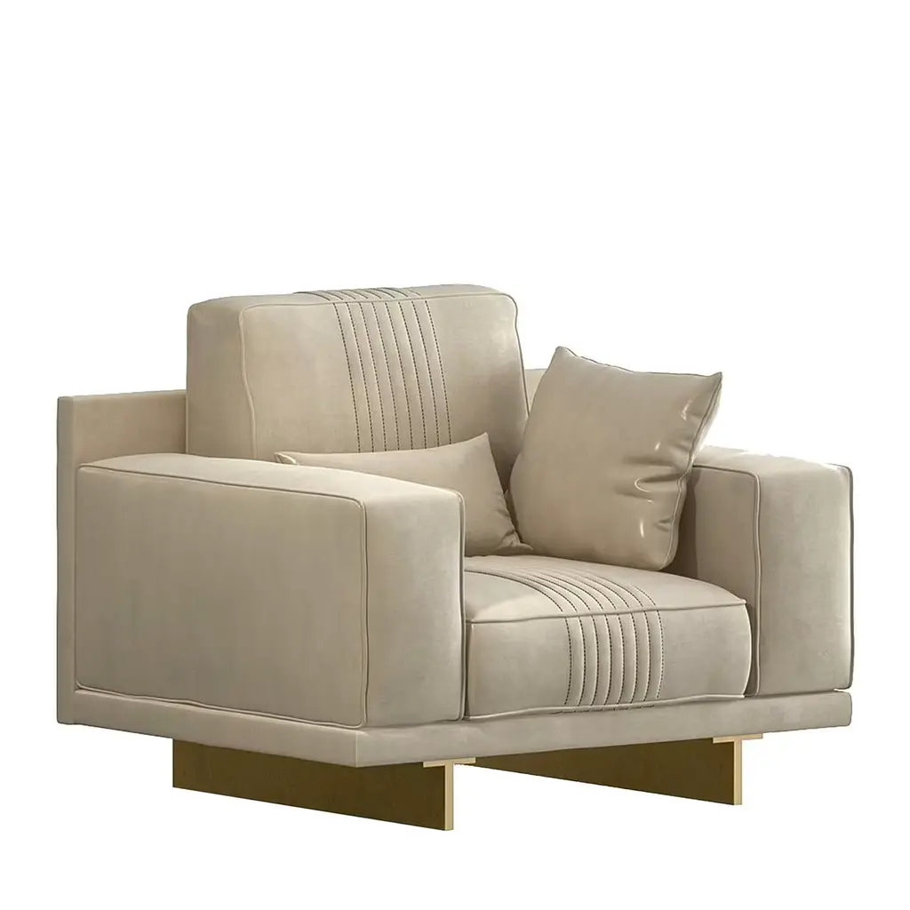 Characterized by a soft econubuck upholstery, this two-seater sofa features a metal base in golden galvanic finishing. The irregular shape stitched on the back complete the design to create a unique piece, making it more stylish and perfect for every home. Please ask Concierge for customization options.