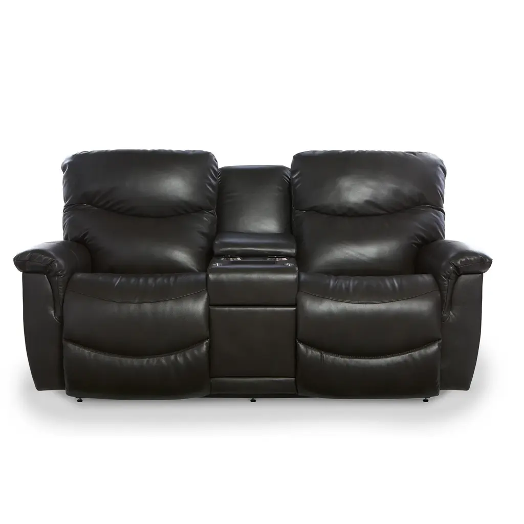 The James Leather Power Plus Reclining Console Loveseat is the ultimate in comfort and convenience. With dual-sided reclining power, power-tilt headrests, and a middle console with multiple storage compartments, it's perfect for anyone who wants to relax in style. You can customize your comfort on each side with toggle switches, go from upright to fully reclined, and adjust the headrest to find the perfect angle for your head and neck, thanks to the independent power-tilt headrest motor. The bucket-style seat, stitched pillow back, and pillow top arms are designed to pamper you in softness, so you can truly relax and enjoy your downtime.