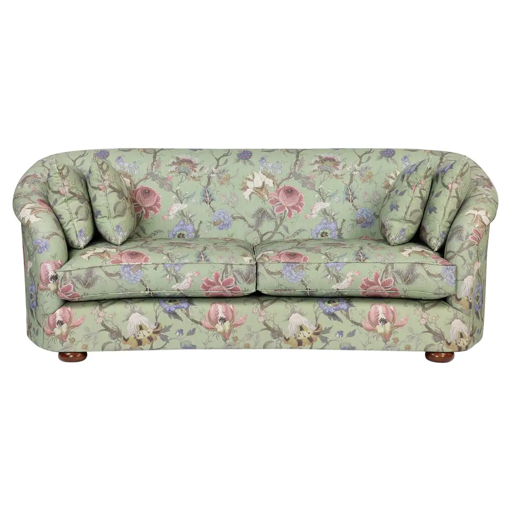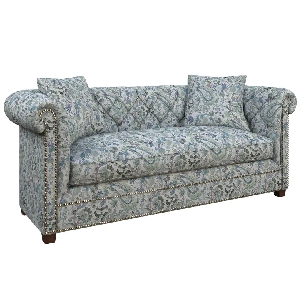 Designed by us and available only at One Kings Lane: Colorful floral upholstery modernizes this traditional settee, which is carefully crafted of European beech and trimmed in polished silver nailheads. A generous down-wrapped foam fill ensures lasting support and comfort. Handcrafted in the USA.