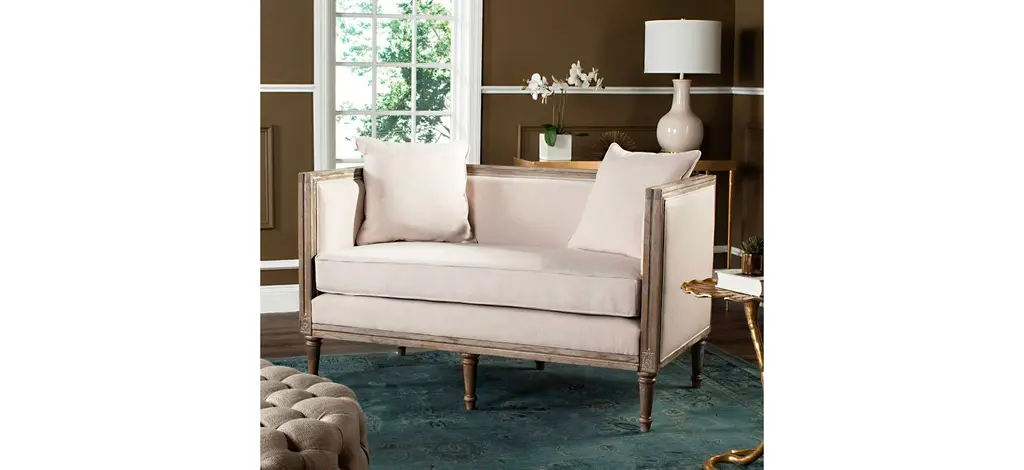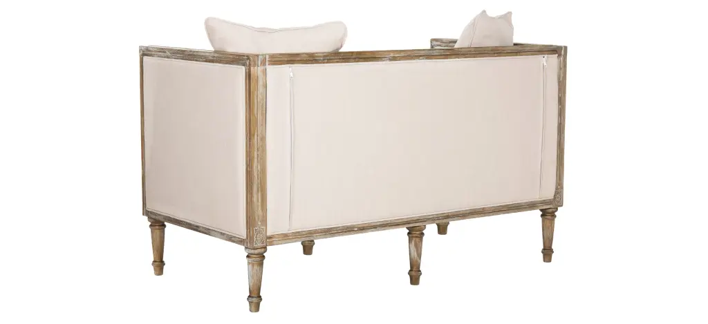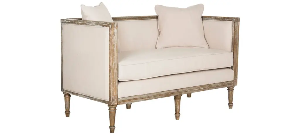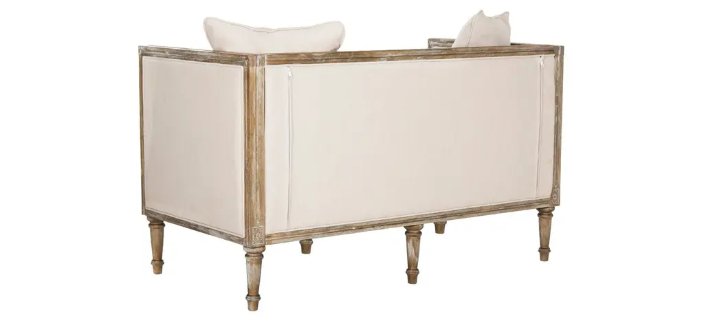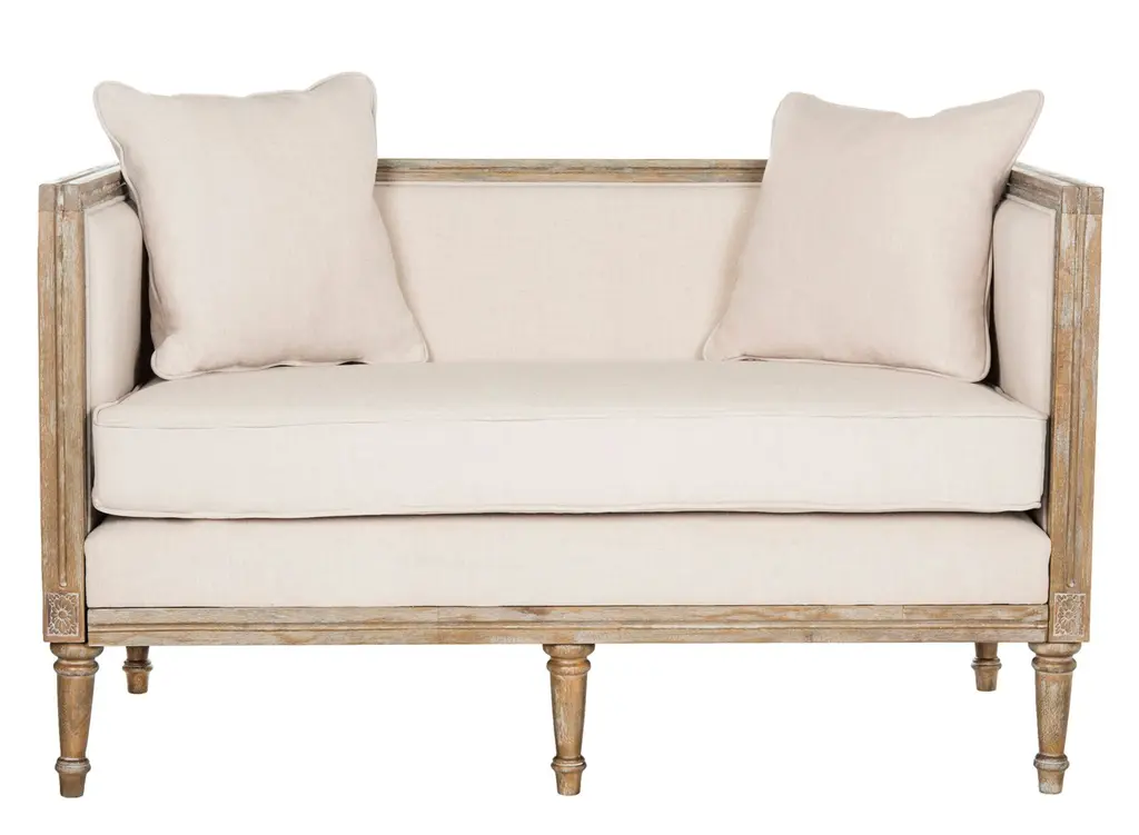 Brimming with French antique charm, this Jaycee Settee is perfect for elegant farmhouse decor. Jaycee's soft beige linen is excellently paired with a rustic oak finish, and its soothing neutral palette ensures seamless integration with any room's color scheme.