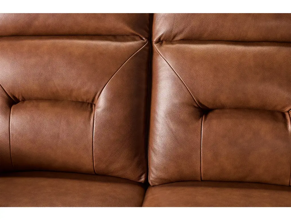 Relax in luxurious comfort with this Juno Leather Power Loveseat Recliner with Power Headrest from Kuka Furniture. This contemporary-style loveseat recliner features two recliners, soft leather with track arms, and tufted backs, seats, and footrests. View your favorite programs sitting upright or recline and take a nap at the touch of a button. A convenient USB port lets you charge your electronic device while you recline.