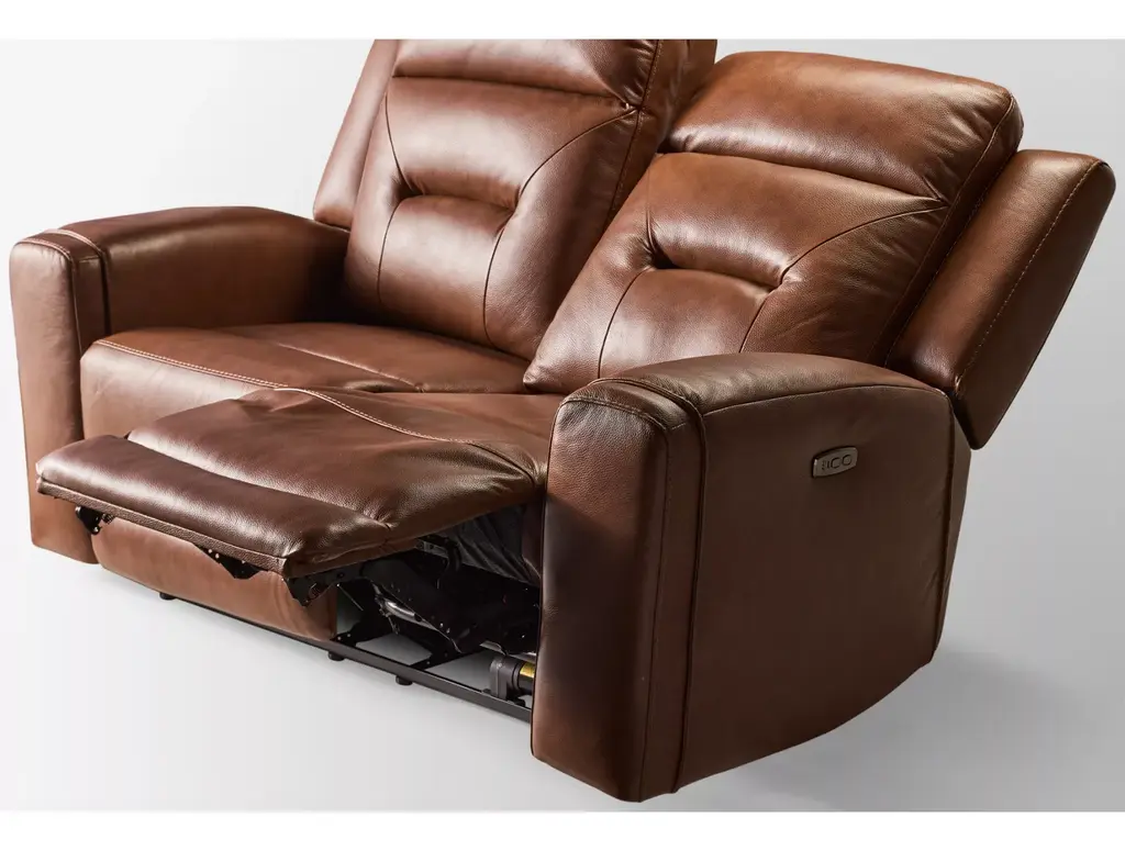 Juno Leather Dual Power Loveseat Recliner With Tilt Headrest