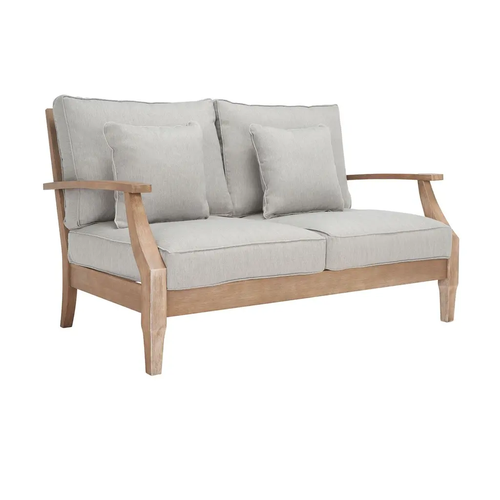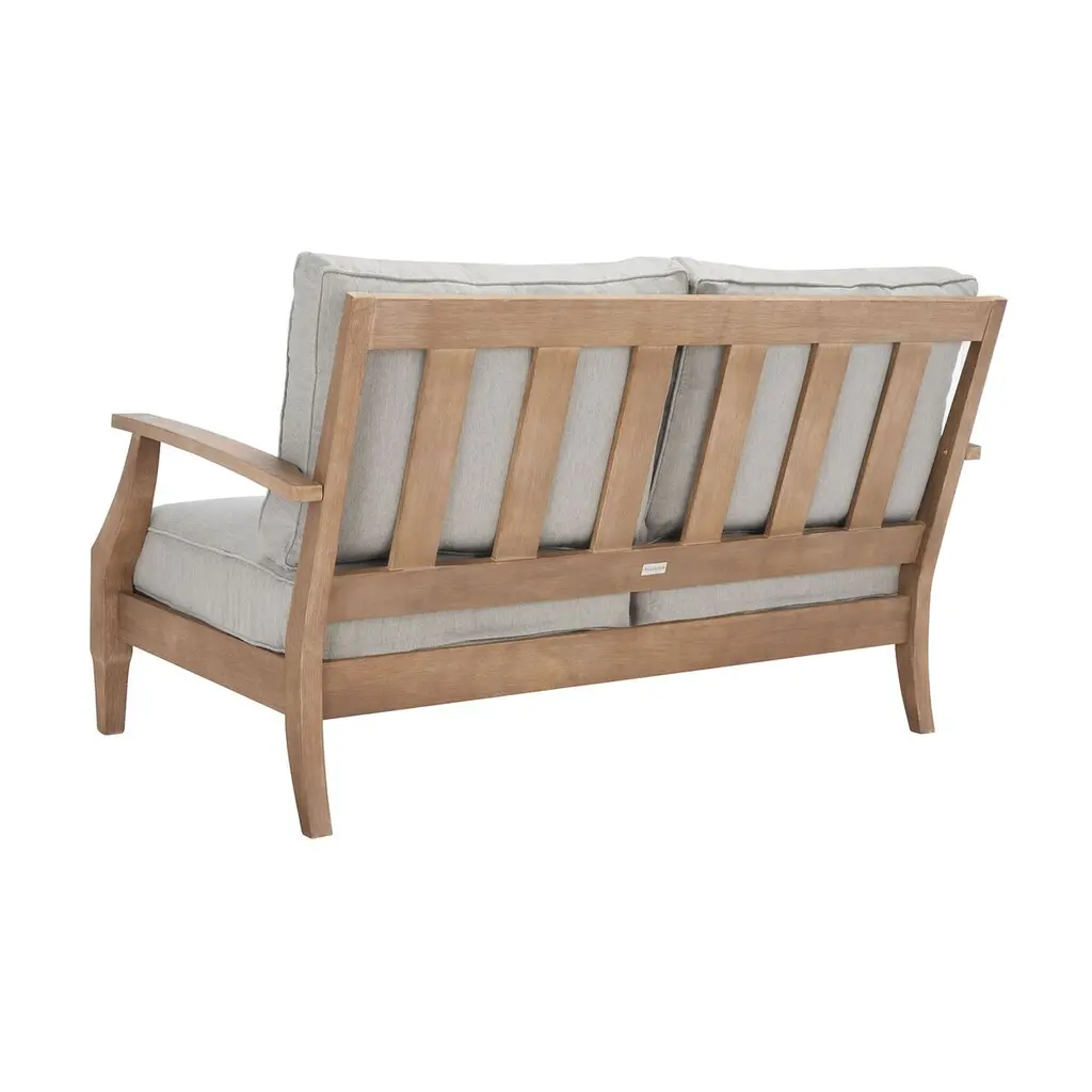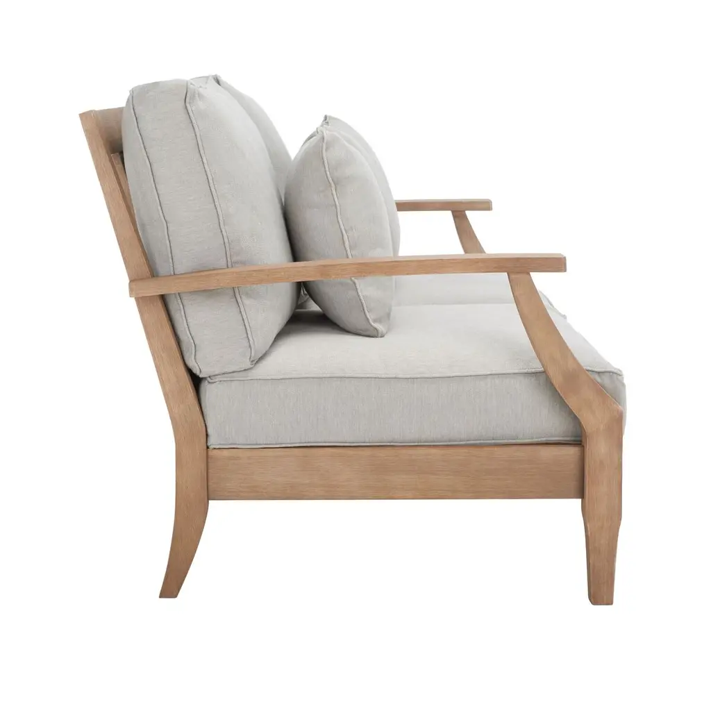 A portrait of romantic colonial styling, this Kairo Patio Loveseat brings the opulent ambiance of a tropical villa to any outdoor living area. Toast to the promise of tomorrow while lounging season after season on the natural eucalyptus frame and plush Olefin upholstered cushions of this luxurious loveseat.