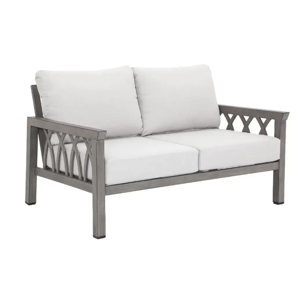 Kenzo Cushion Love Seat, Graphite Frame, Canvas Hazelnut