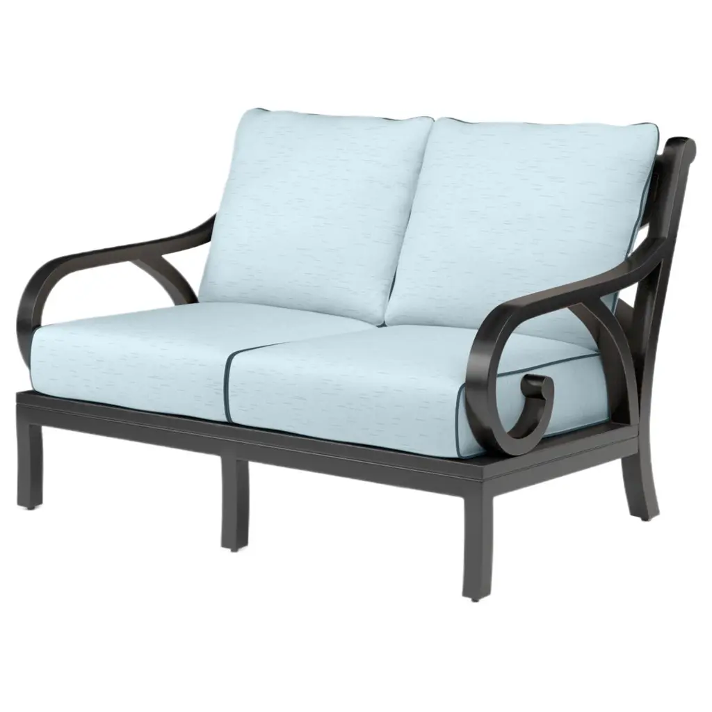 Kenzo Cushion Love Seat, Snow Frame, Aqua Weave Cushion