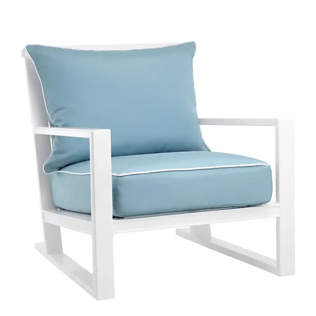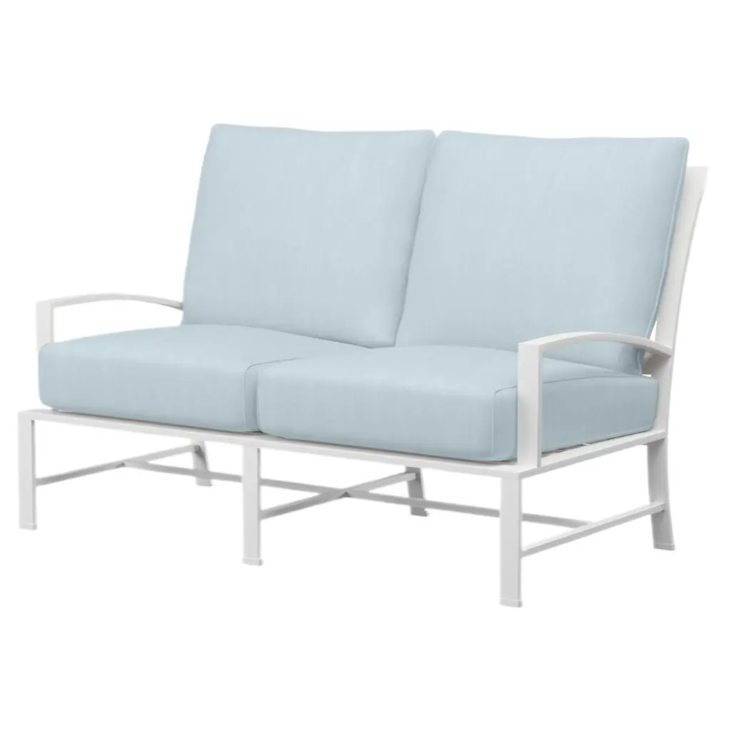 Kenzo Cushion Love Seat, Snow Frame, Aqua Weave Cushion