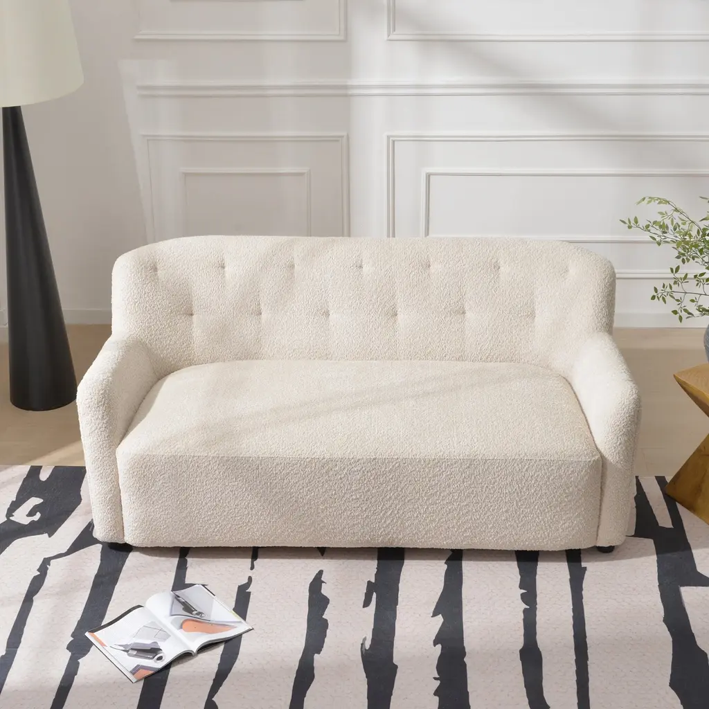 Introducing our 66-inch wide chenille upholstered loveseat sofa, where comfort meets elegance. This sofa features a luxuriously soft chenille fabric that invites you to unwind, while the solid pine and plywood frame ensures durability and stability for years to come.The tufted back design adds a touch of classic sophistication, making it a perfect fit for any living space. The seat cushion is supported by 7 individual springs, providing exceptional support and maintaining shape over time, so you can enjoy both style and comfort without compromise.Designed for ultimate convenience, this loveseat requires no assembly—just unbox and relax. Plus, we’ve included a set of four 4 inches replacement legs in addition to the original 2 inches legs, allowing you to customize the height to suit your preference. Whether you’re looking to elevate your décor or simply seeking the perfect spot to relax, this loveseat delivers on every front.FeaturesDimensionsWhat's Included?Spare Legs (Select either the short legs or the long legs to assemble, depending on your desired height)*Not Included: Toss pillow and blanket
