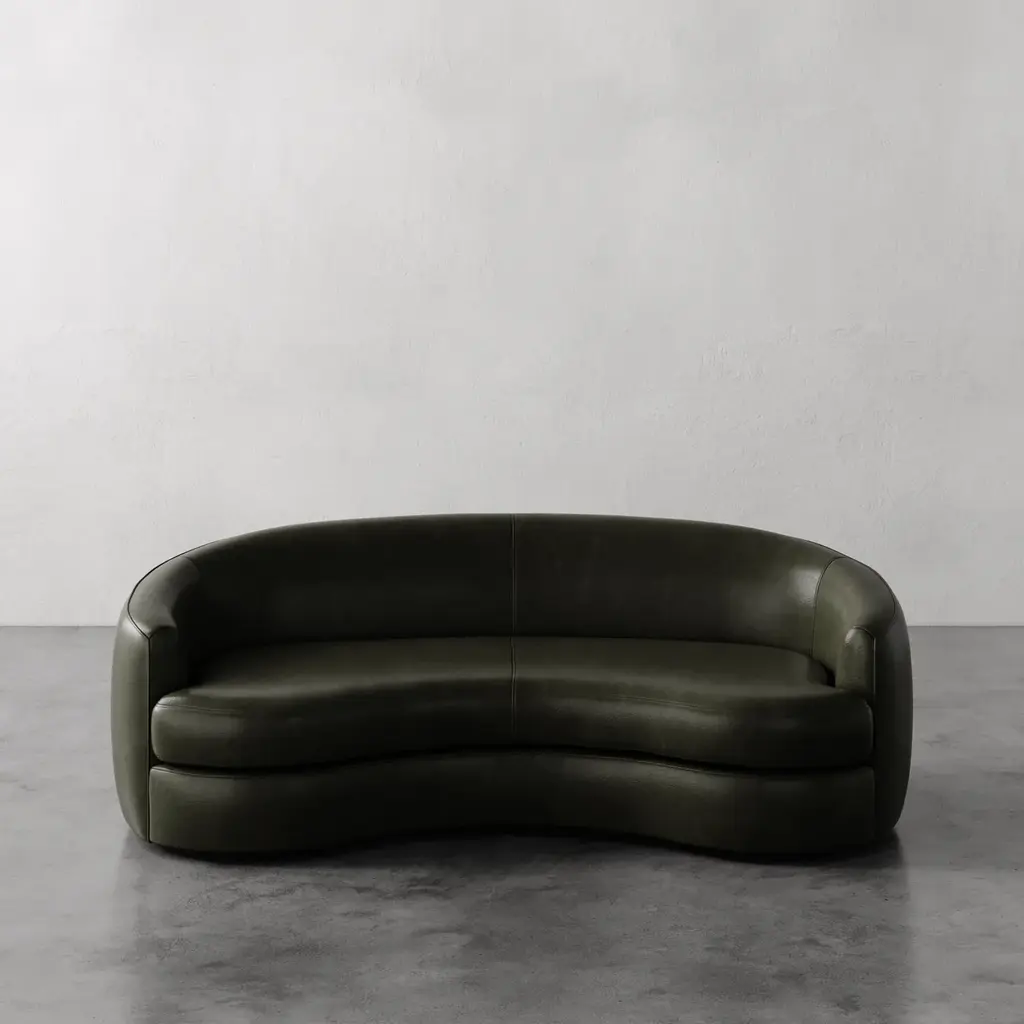 Kir Royal Sofa: a blend of classical elegance and modern sophistication. Meticulously crafted by Christophe de la Fontaine in Italy, it features a distinctive back, three-dimensional flock texture on leather upholstery, and a wooden base. Imperfections are celebrated as integral elements, making each sofa unique. Finished in pickled oak and Acquario leather, it embodies Italian craftsmanship, comfort, and design excellence.