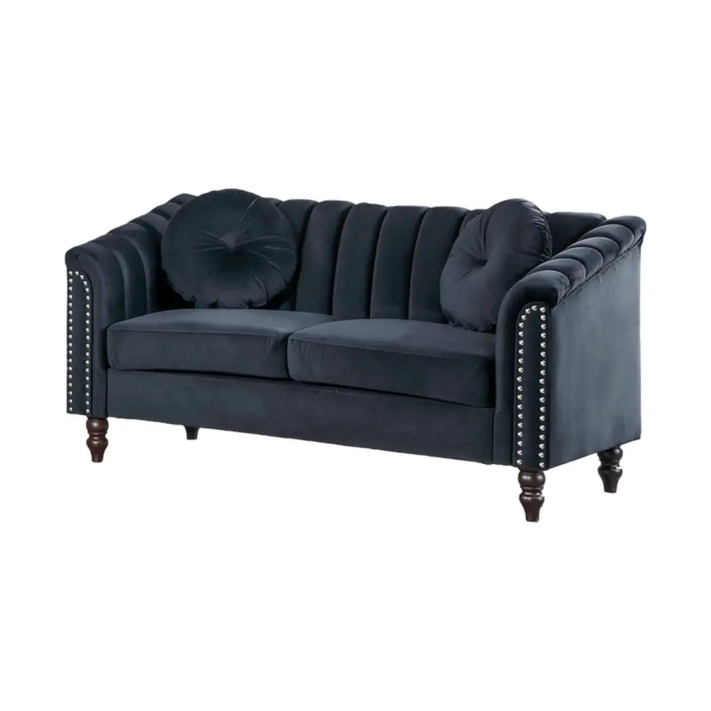 Meet all your living room needs with seating that checks both comfort and style. This stunning loveseat is the ideal addition to any interior space with its classic design and elegant elements such as beautifully turned legs and graceful scroll arms. Featuring smooth upholstery, this loveseat stands as a streamlined statement piece that can change the whole flow of your living room, creating an open, clean space. Finished with a gorgeous nailhead trim and clean channel stitching, our loveseat provides a sophisticated touch to any room. CLASSIC STYLE: The channel stitching in the backrest offers an extra touch of sophistication that provides a smooth design. The straight stitch pattern adds a bit of texture without sacrificing any comfort. NAILHEAD ACCENTS: This loveseat spares no expense when it comes to its finishing details. Expertly styled, this piece has tasteful nailhead accents bordering the armrests. Each nailhead is individually applied for a beautiful, hand-crafted touch. UPHOLSTERED: Our loveseat is generously upholstered, giving any room a refined appearance. This provides a smooth, immaculate texture for this piece as well as a plush seating for extra comfort. DIMENSIONS: Choose an accessory that is the perfect size for you and your furniture. This loveseat is 60" W x 31" D x 31" H. You will love how much your space can transform with the simple addition of this charming loveseat.