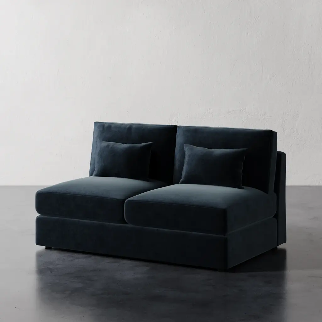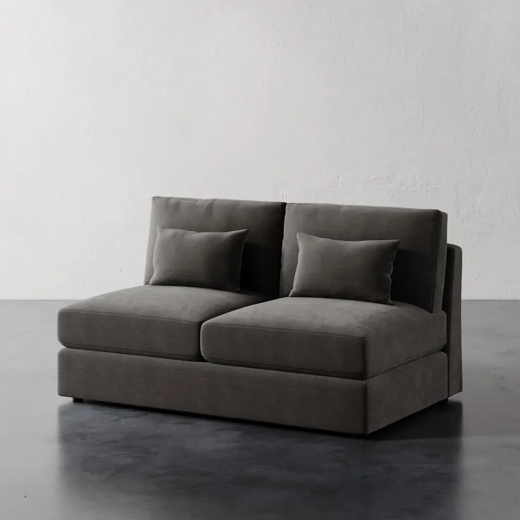 The Lacroix Collection from Lemieux et Cie is a modular masterpiece that brings timeless form and modern comfort into perfect balance. Inspired by the iconic geometry of Jean-Michel Frank, each piece is defined by clean rectilinear lines and deep, generous proportions. Designed for versatility, the collection includes multiple modular components that can be configured to create custom sectional sofas of any size or scale. With sink-into comfort and sculptural simplicity, the Lacroix Collection offers a tailored foundation for contemporary living. Bolster pillows included.The Lacroix Armless Loveseat is handmade by skilled artisans in North Carolina.