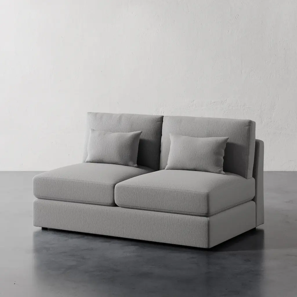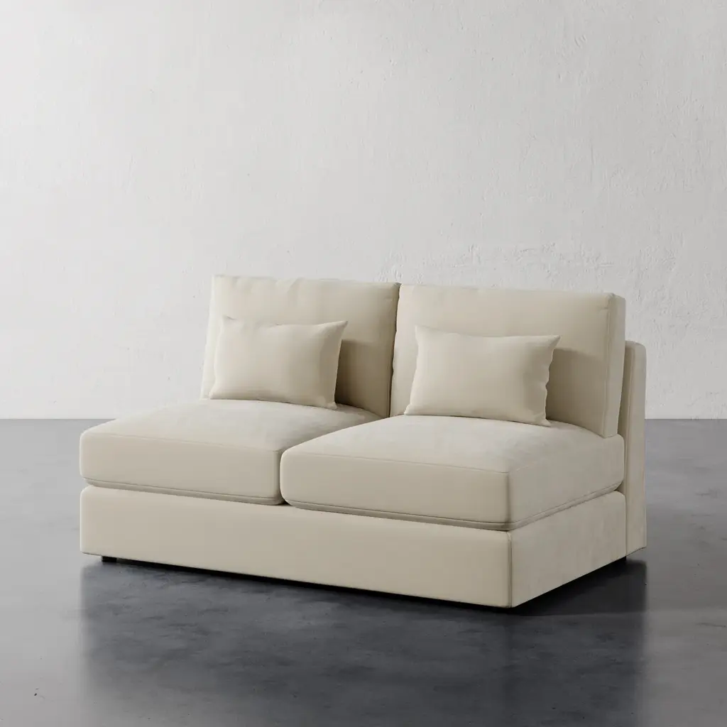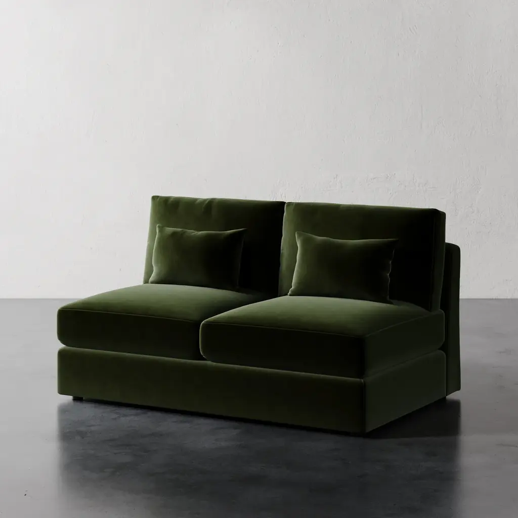 The Lacroix Collection from Lemieux et Cie is a modular masterpiece that brings timeless form and modern comfort into perfect balance. Inspired by the iconic geometry of Jean-Michel Frank, each piece is defined by clean rectilinear lines and deep, generous proportions. Designed for versatility, the collection includes multiple modular components that can be configured to create custom sectional sofas of any size or scale. With sink-into comfort and sculptural simplicity, the Lacroix Collection offers a tailored foundation for contemporary living. Bolster pillows included.The Lacroix Armless Loveseat is handmade by skilled artisans in North Carolina.