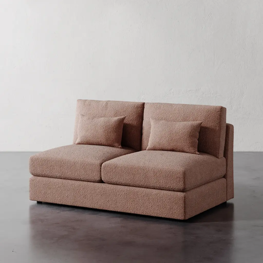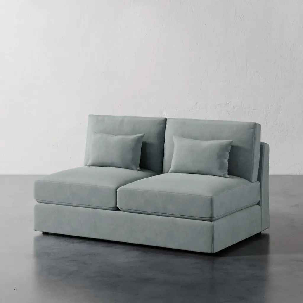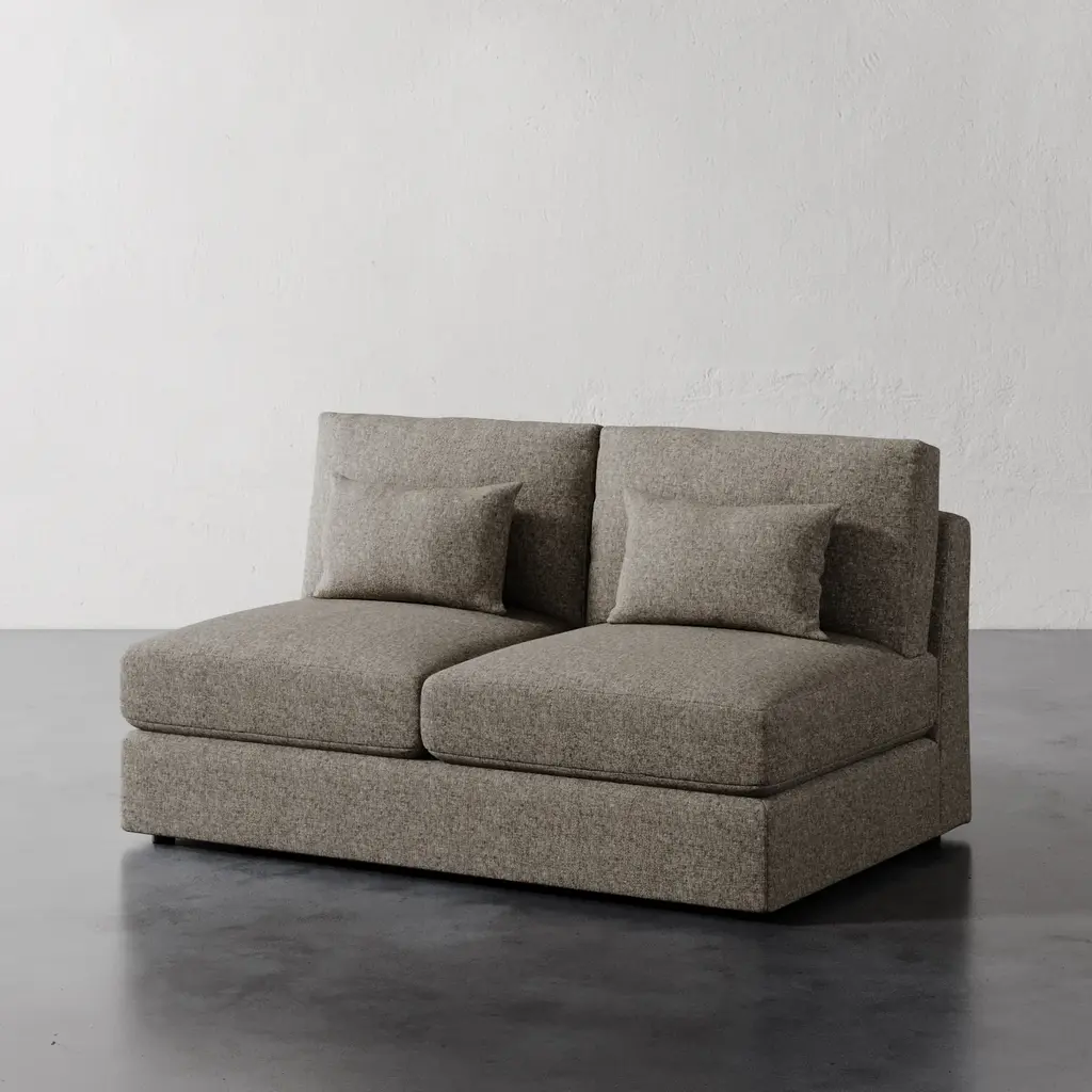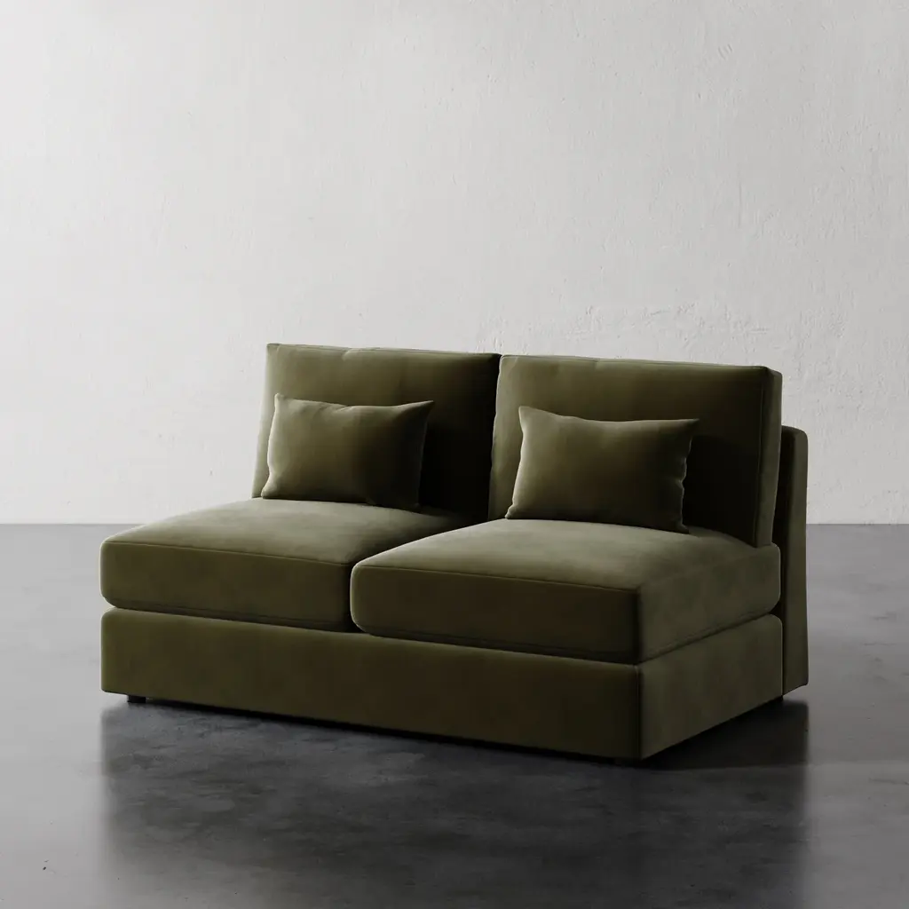 The Lacroix Collection from Lemieux et Cie is a modular masterpiece that brings timeless form and modern comfort into perfect balance. Inspired by the iconic geometry of Jean-Michel Frank, each piece is defined by clean rectilinear lines and deep, generous proportions. Designed for versatility, the collection includes multiple modular components that can be configured to create custom sectional sofas of any size or scale. With sink-into comfort and sculptural simplicity, the Lacroix Collection offers a tailored foundation for contemporary living. Bolster pillows included.The Lacroix Armless Loveseat is handmade by skilled artisans in North Carolina.