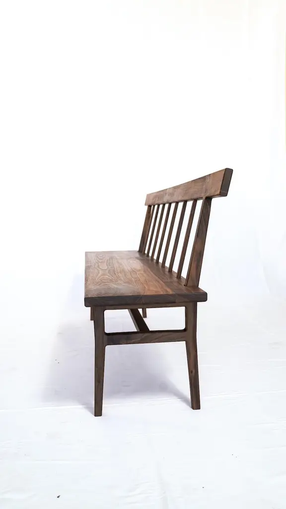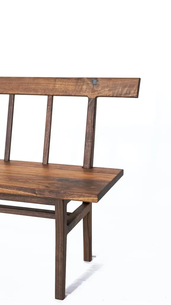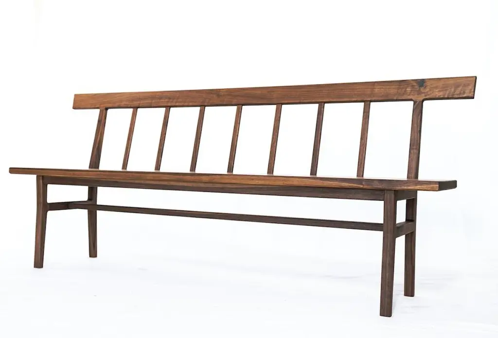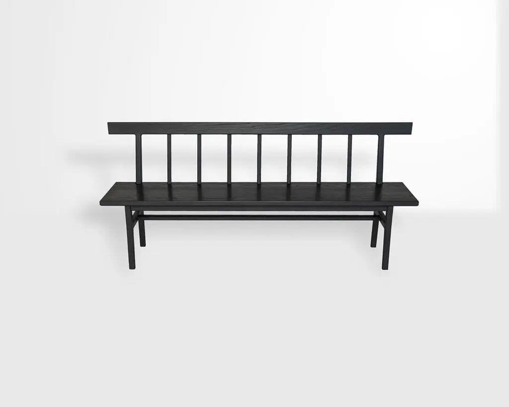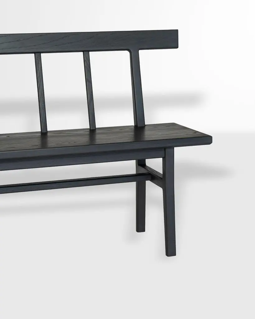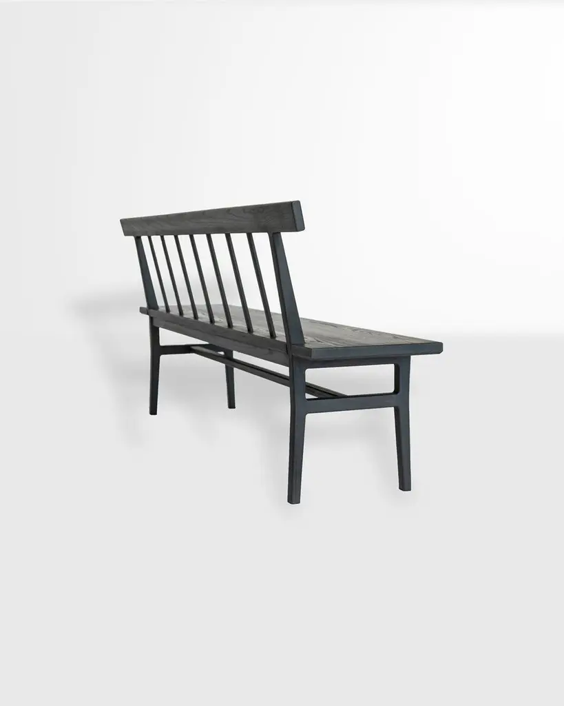 A clean modernization of a Classic Windsor bench, this settee features sculpted legs and slats instead of dowels and spindles. Constructed from sustainable blackened ash, the settee is artisan crafted with traditional joinery and finished with an all-natural, 100% plant-based, hard-wax oil. "The Laurel Settee was inspired by the old Windsor bench my parents inherited from my grandmother. Shaker constructed from steam bent oak and maple dowels, this piece was always a source of welcome and hospitality both in my grandmother's home and then in my parents. I sought to capture the essence of it in this design, achieving similar dimensions of comfort but with a modernized form highlighting skilled craftsmanship and sculpted joinery." - Carter Ellis, Maker & Owner, Ellis TableAlso shown in Walnut.