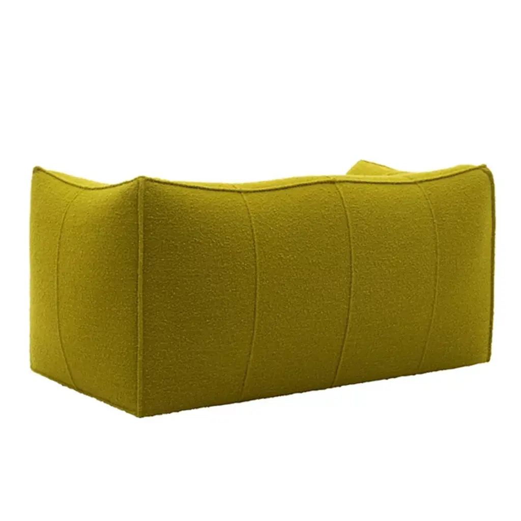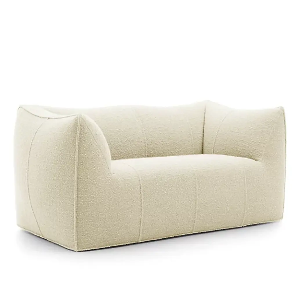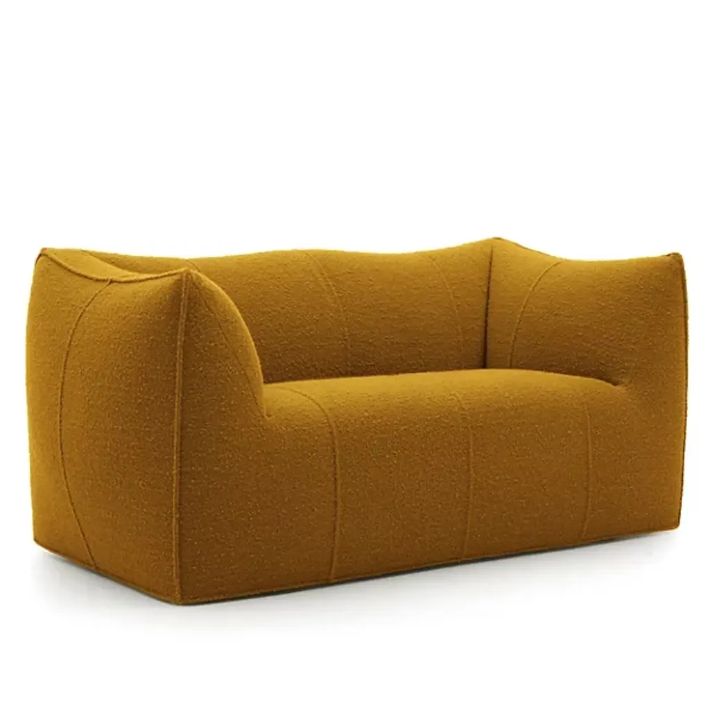 The award-winning Le Bambole 2-Seater Sofa from B&B Italia creates a sense of ease through a delicate organic figure. Designer Mario Bellini’s work presents organic forms with Italian style values. Foregoing the typical load-bearing metal structure, this sofa features a recycled polyethylene structure. Generous layers of foam pad the product to ensure the ultimate comfort experience. All materials were chosen from a perspective of sustainability; therefore, this sofa’s components are completely disassemblable and recyclable.