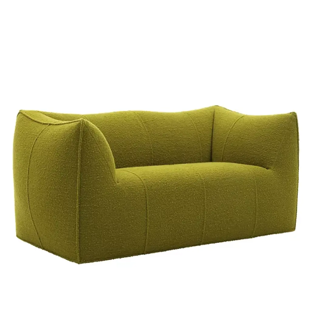 The award-winning Le Bambole 2-Seater Sofa from B&B Italia creates a sense of ease through a delicate organic figure. Designer Mario Bellini’s work presents organic forms with Italian style values. Foregoing the typical load-bearing metal structure, this sofa features a recycled polyethylene structure. Generous layers of foam pad the product to ensure the ultimate comfort experience. All materials were chosen from a perspective of sustainability; therefore, this sofa’s components are completely disassemblable and recyclable.