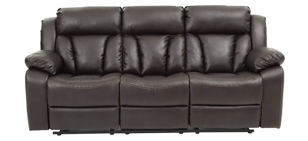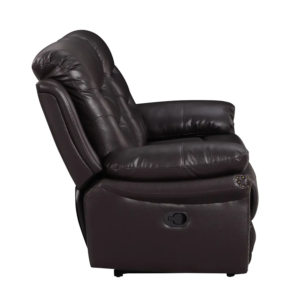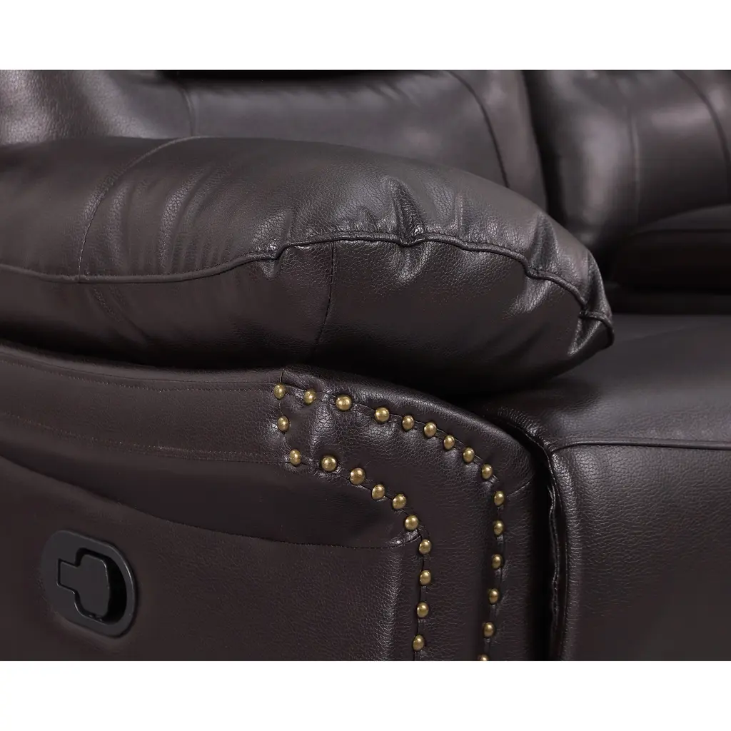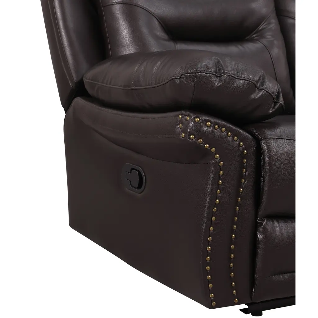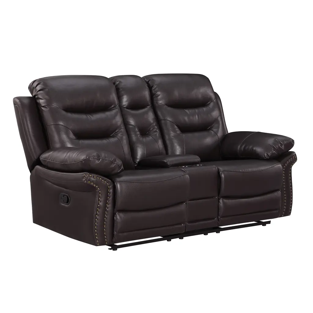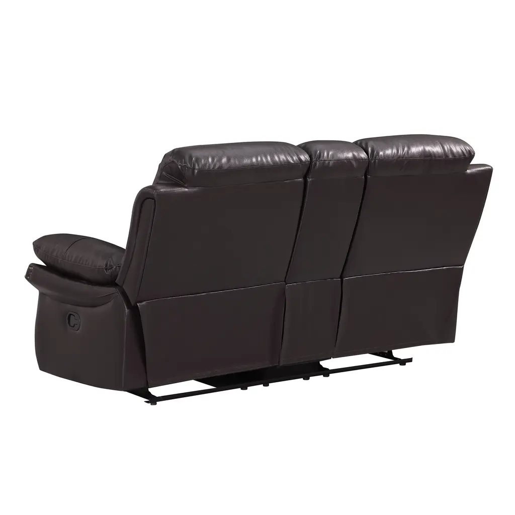 Leather Air Upholstered Reclining Console Loveseat With Fiber Back - Brown