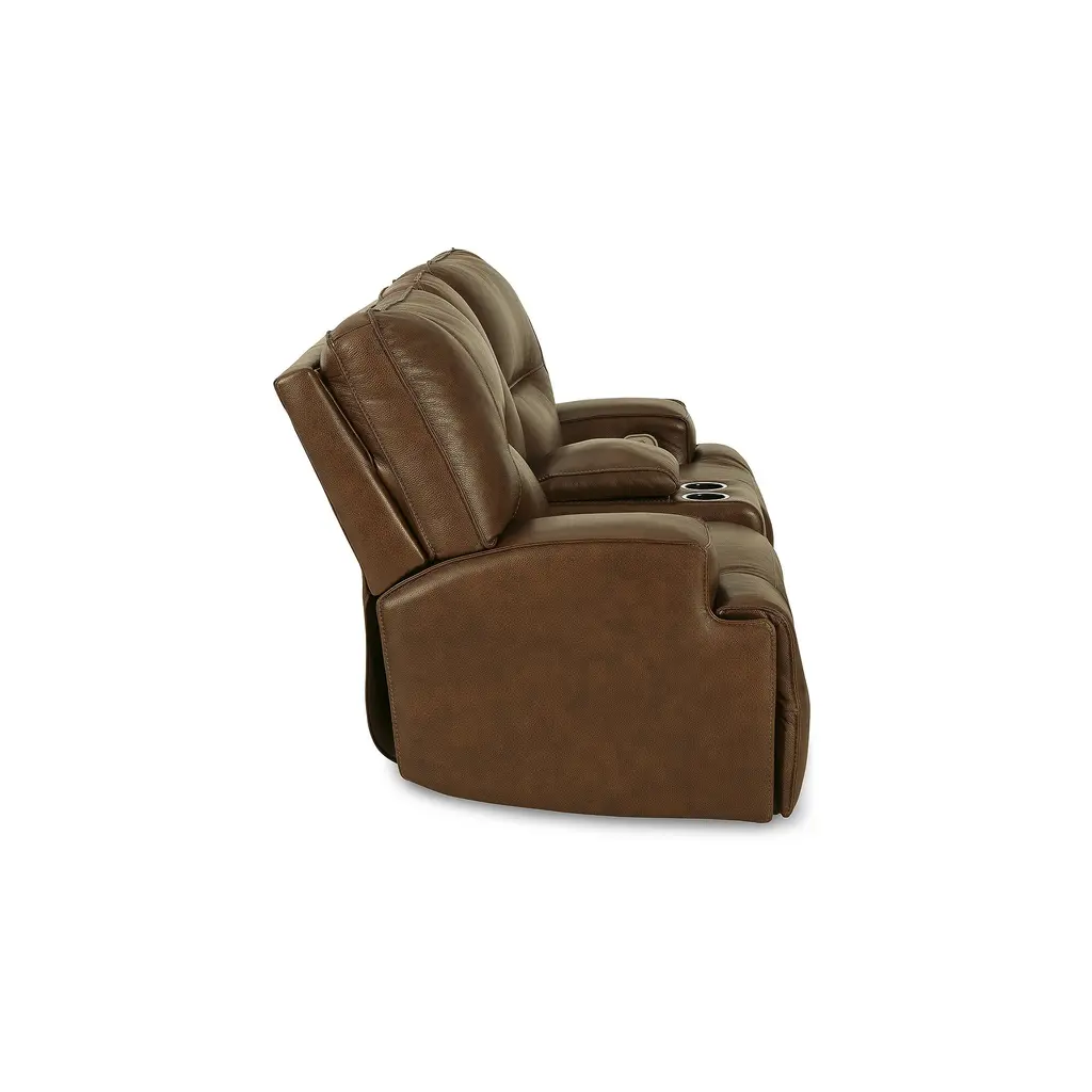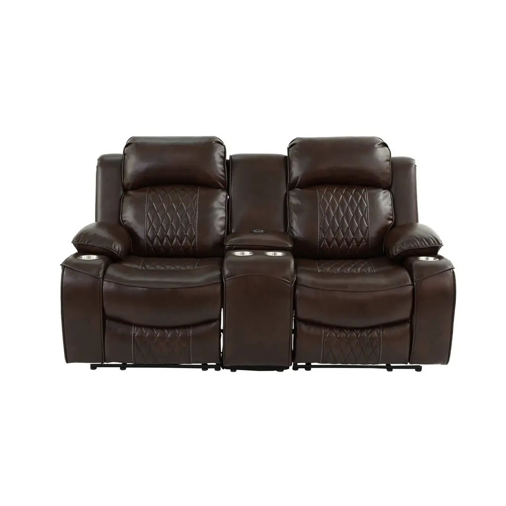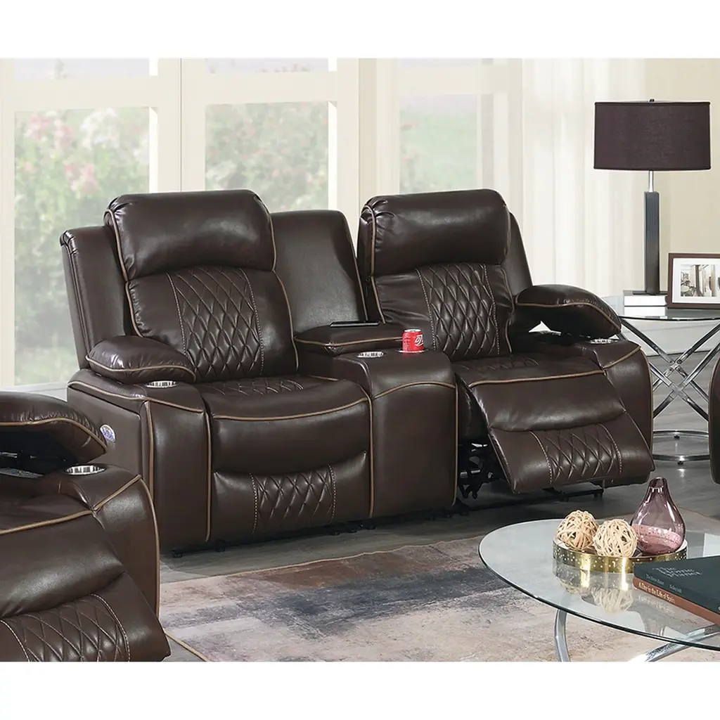 Leatherette Power Motion Loveseat With Storage Arms - Brown