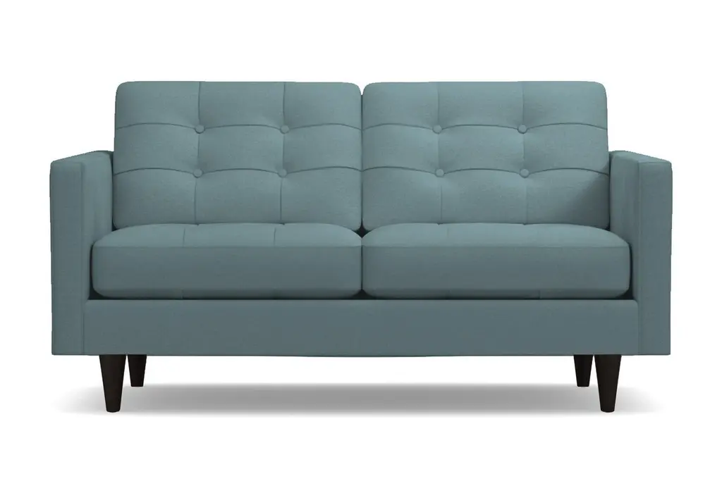 Don't settle for a boring sofa that makes your living room look "blah." Instead, get an instant wow factor by choosing the customizable Lexington apartment sofa for your home. This sofa looks simple, but it has lots of little touches that make it stand out, including button-tufted cushions, high track arms and tapered wooden legs. There's a bit of a mix between retro mid-century style and contemporary looks - perfect for your modern, eclectic tastes. We even include a limited lifetime warranty with your purchase free of charge. As if the fun and funky style weren't enough to win you over, you can also customize this chic apartment sized couch according to your tastes. That includes choose from our wide variety of fabric colors and leg finishes. You can even get our ultra-compact size (62 inch loveseat) or spring for the extended cut (78 inch apartment size), making it easy to get just the right fit for your space. If you want apartment size furniture that's made right here in the USA, get the Lexington sofa from Apt2B.