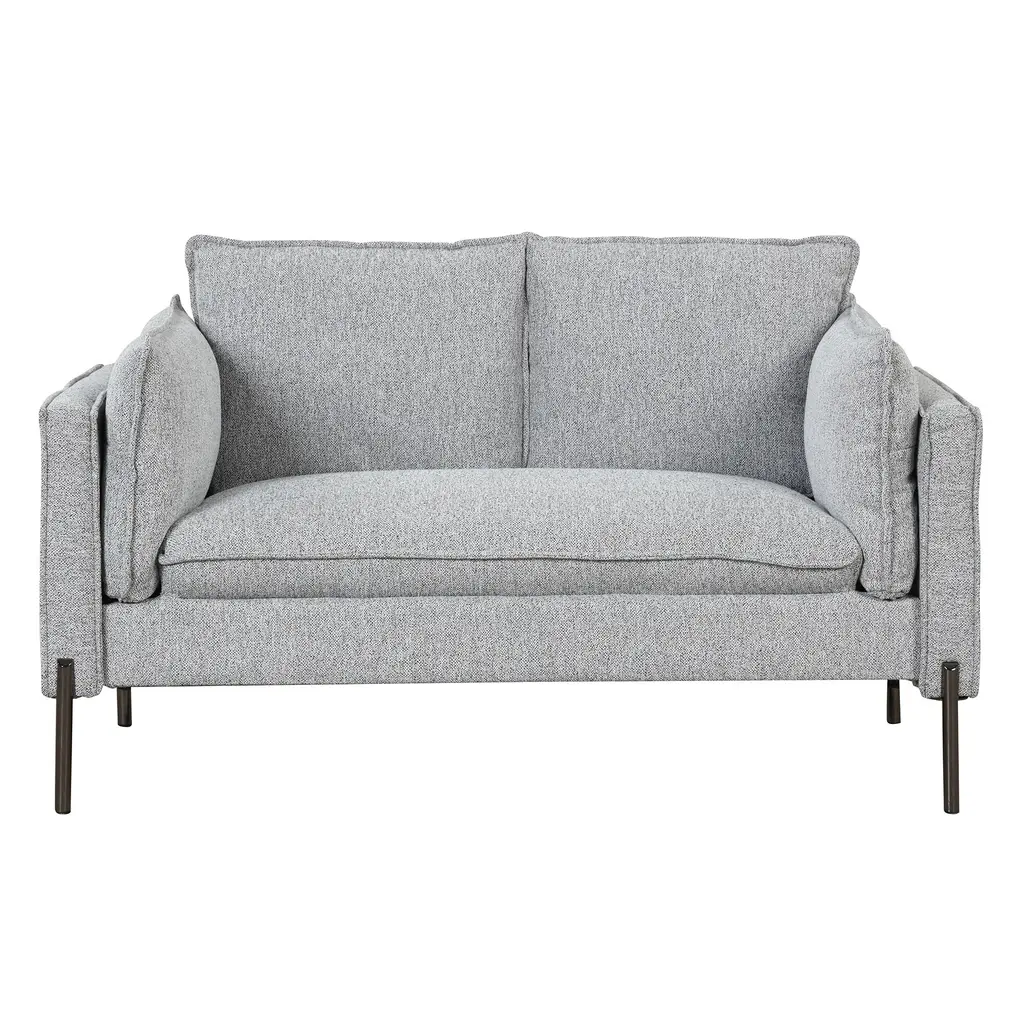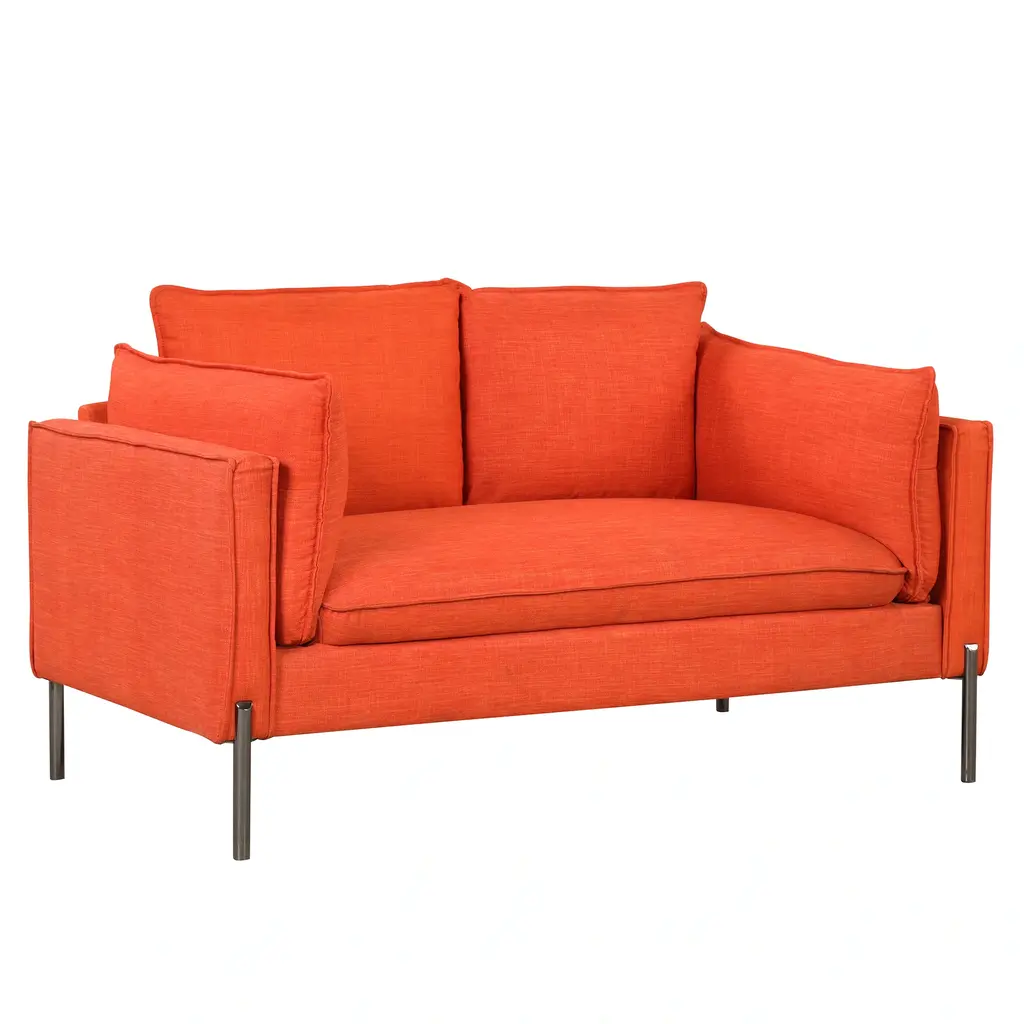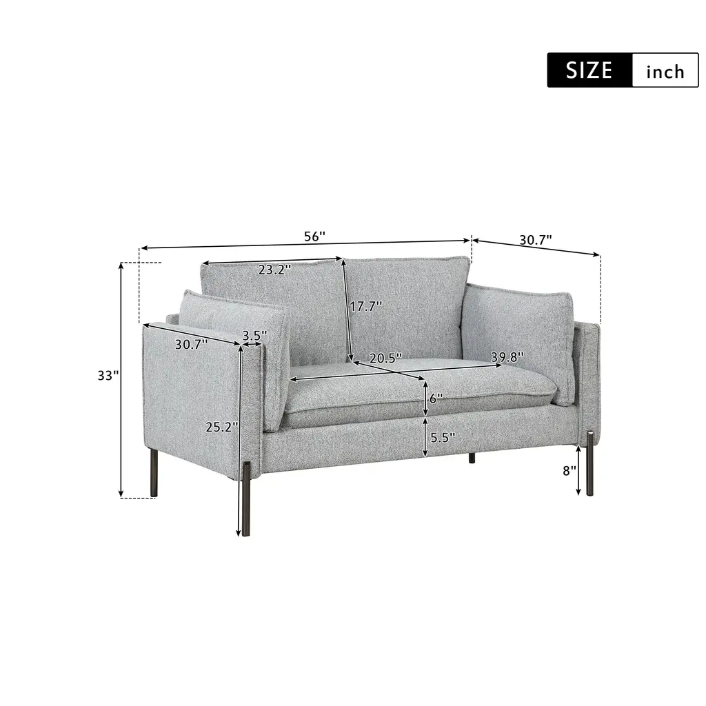 Comfortable Seat Cushion - Modern linen material, seat cushions filled with high resilience foam and provide comfortable support for your body when seated, and easily regain their shape when you rise.Matching Two Extra Bolster Pillows.Extra bolster pillows are placed on both sides of the sofa. Use it as additional back support to relieve your back tightness or as a pillow when you napping on the couch.Solid and Durable - Wood frame and durable metal legs make the sofa sets for living room can support largest weight of 300lbs/seat, added stability and durability, can be used for a long time.Perfect for Small Space - Don't lost style in your small rooms or compact spaces! This small couch adds charm to your small apartment, dorm, living rooms or loft .