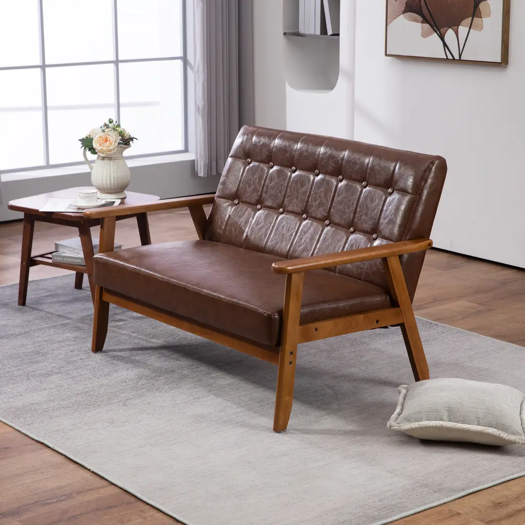 Designed with versatility in mind, this loveseat combines classic charm with robust construction. Its solid wood frame and legs ensure durability, while the thick cushioning and three fabric options (PU leather, linen, and microsuede) allow you to customize it to match your decor seamlessly.Features:Details: