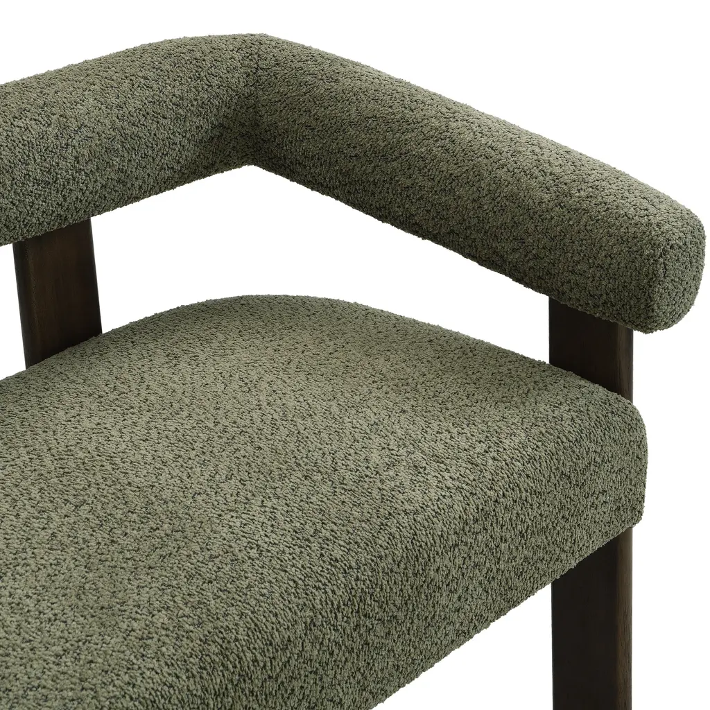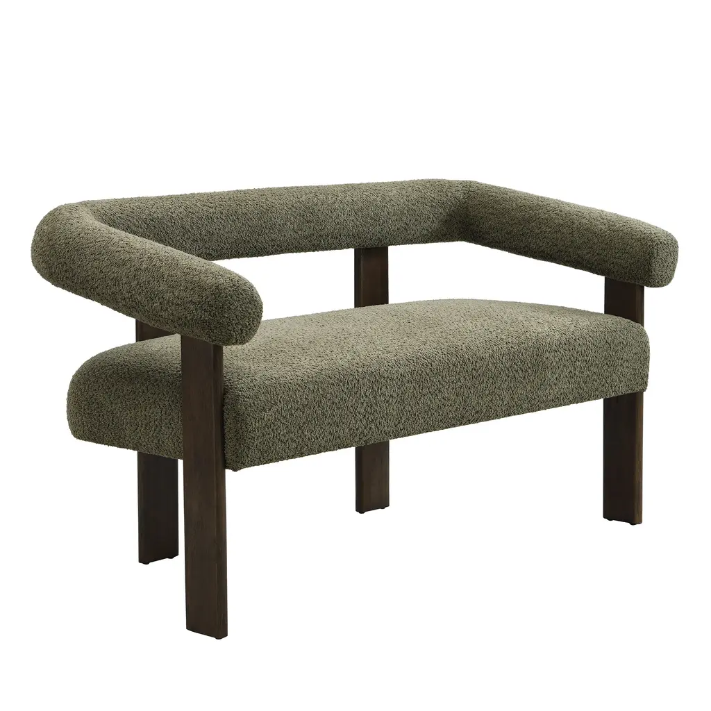 Bring modern charm to your space with this upholstered loveseat. Featuring luxurious dark green fabric and a sturdy rubberwood frame with a warm brown finish, it offers a perfect balance of comfort and style. Compact yet inviting, it's an excellent choice for living rooms, offices, or cozy nooks, blending effortlessly with contemporary or classic decor. VERSATILITY: Perfect for living rooms, entryways, or cozy corners, this loveseat adds elegance and comfort to various spaces. LUXURY: The high-density foam cushioning and dual-tone coloring offer a luxurious seating experience, while the elegant C-back design enhances its visual appeal. DURABILITY: Built with a sturdy rubberwood frame, this loveseat is designed to provide lasting support and withstand everyday use. EASY MAINTENANCE: The durable materials and simple design make this loveseat easy to clean and maintain, ensuring it stays looking great with minimal effort. DIMENSIONS: 53.25" L x 24.75" W x 29.5" H SEAT: 18.75" H