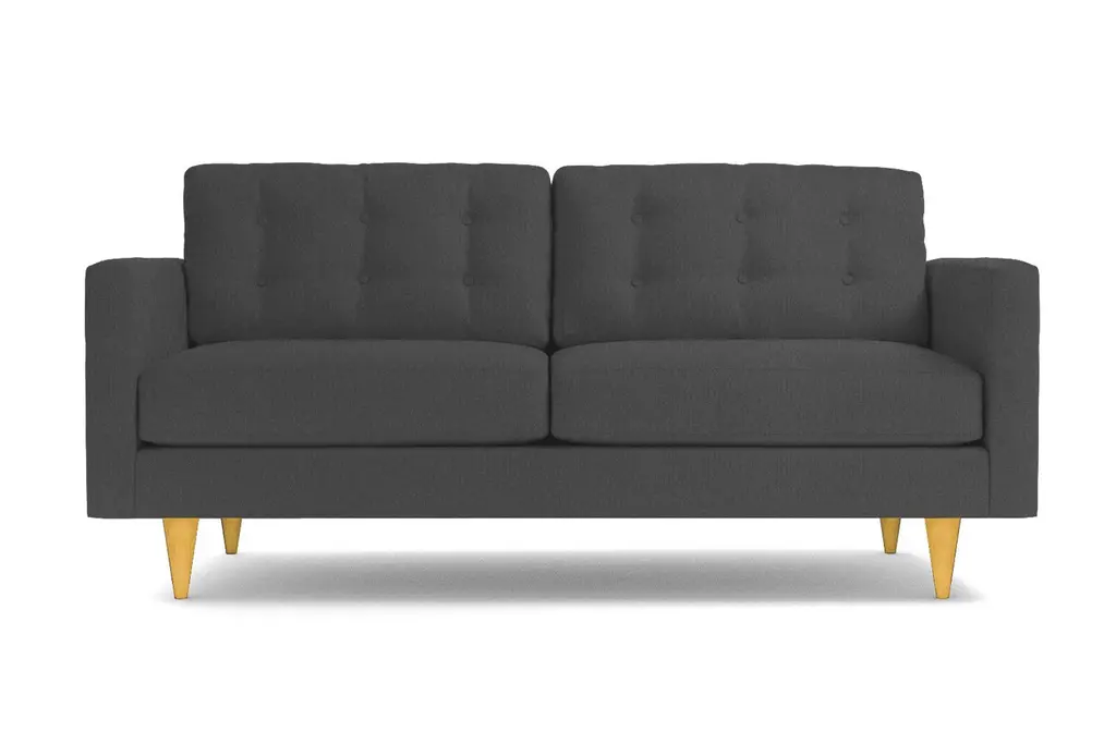 The Logan Loveseat is the easiest way to add a touch of vintage glamour to your living space. The sleek tapered wooden legs and button-tufted back cushions will look just stunning in your living room and because Apt2B thinks of just about everything, this couch was designed specifically for apartment living - so it's not too big, it's not too small - it's just right. Relax on the soft cushions and kick your feet up after a day at the office. Enjoy your choice of fabrics and browse over 50 different colors. Whether you want to stick to a classic shade or you crave something bright and vivid, we've got it. The Logan Sofa comes with a limited lifetime warranty. Add a bit of vintage glamour to your space with the Logan. Sleek wood legs and button tufted back cushions take this modern shape to an elevated level. The ultimate show piece for your stylish room.