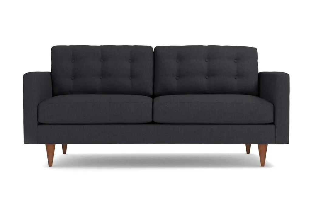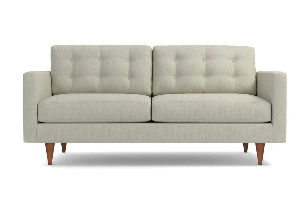 The Logan Loveseat is the easiest way to add a touch of vintage glamour to your living space. The sleek tapered wooden legs and button-tufted back cushions will look just stunning in your living room and because Apt2B thinks of just about everything, this couch was designed specifically for apartment living - so it's not too big, it's not too small - it's just right. Relax on the soft cushions and kick your feet up after a day at the office. Enjoy your choice of fabrics and browse over 50 different colors. Whether you want to stick to a classic shade or you crave something bright and vivid, we've got it. The Logan Sofa comes with a limited lifetime warranty. Add a bit of vintage glamour to your space with the Logan. Sleek wood legs and button tufted back cushions take this modern shape to an elevated level. The ultimate show piece for your stylish room.