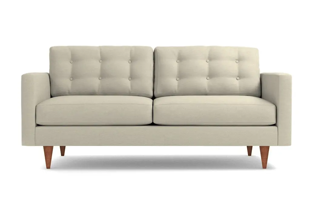 The Logan Loveseat is the easiest way to add a touch of vintage glamour to your living space. The sleek tapered wooden legs and button-tufted back cushions will look just stunning in your living room and because Apt2B thinks of just about everything, this couch was designed specifically for apartment living - so it's not too big, it's not too small - it's just right. Relax on the soft cushions and kick your feet up after a day at the office. Enjoy your choice of fabrics and browse over 50 different colors. Whether you want to stick to a classic shade or you crave something bright and vivid, we've got it. The Logan Sofa comes with a limited lifetime warranty. Add a bit of vintage glamour to your space with the Logan. Sleek wood legs and button tufted back cushions take this modern shape to an elevated level. The ultimate show piece for your stylish room.