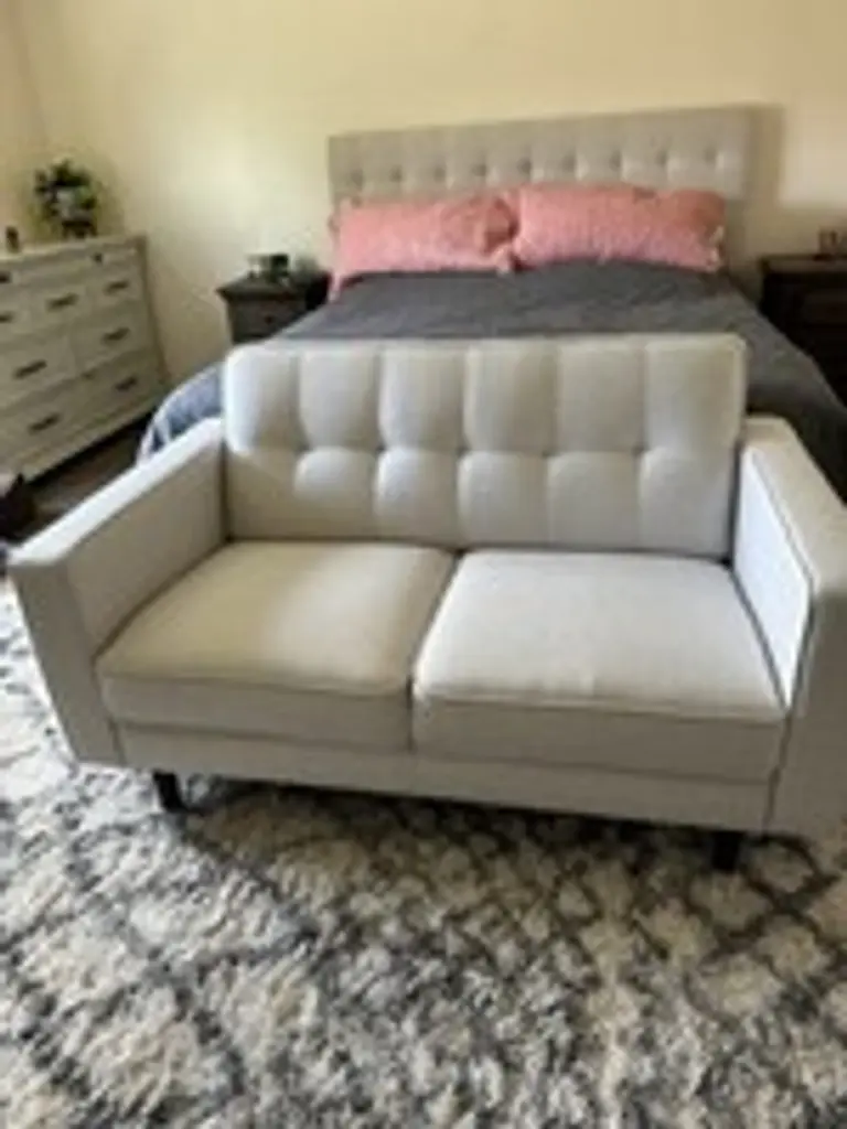 Enjoy mid-century modern style at its most affordable, beautiful and versatile with our London Optical loveseat. You'll love the tight, grid-tufted back, track arms and tapered beech wood legs, which can be removed for easy delivery. From solid construction, to streamlined tailoring, to durable upholstery, every detail reflects meticulous craftsmanship, exceptional quality and outstanding value. Not to mention, you get a choice of 2 colors.