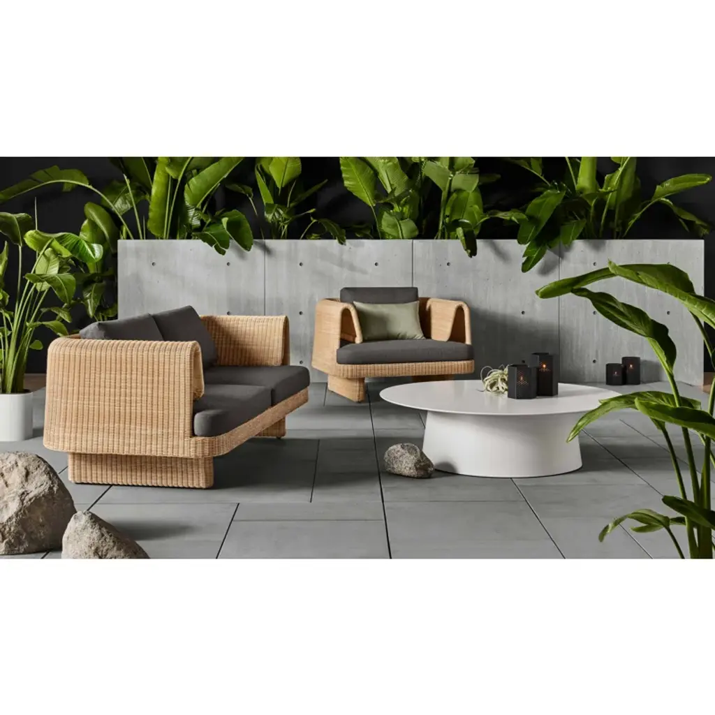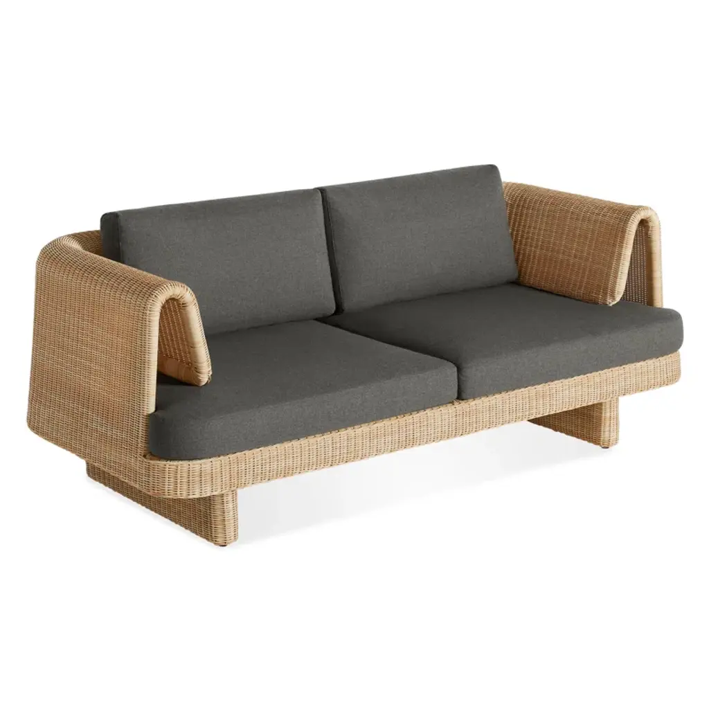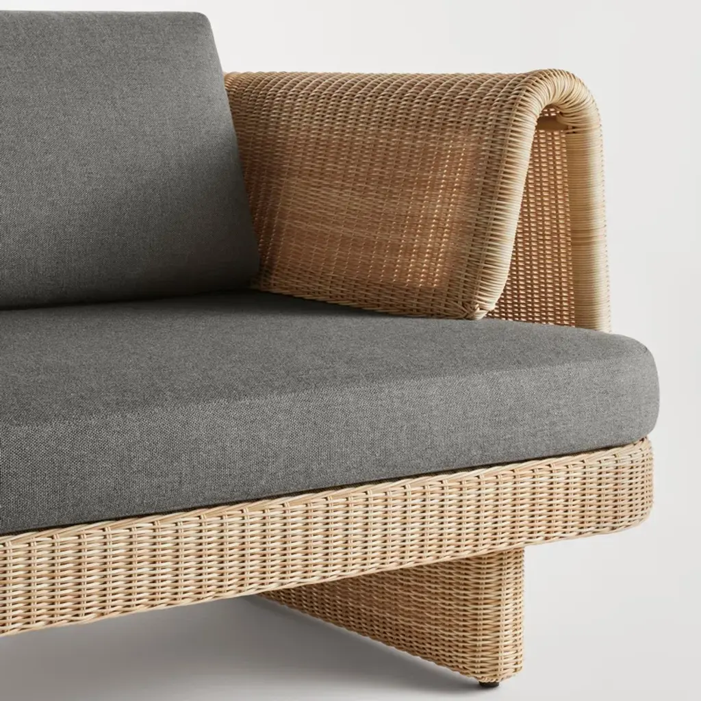 Curvy, comfy, convivial. Loophole sets the stage for long days lounging or heads tossed back late into the night. All-weather rattan wraps around a low-profile frame for a look that's modern, yet classic. Cushions made with high-performance Sunbrella fabric that's both mildew and fade-resistant add yet another layer of ease.