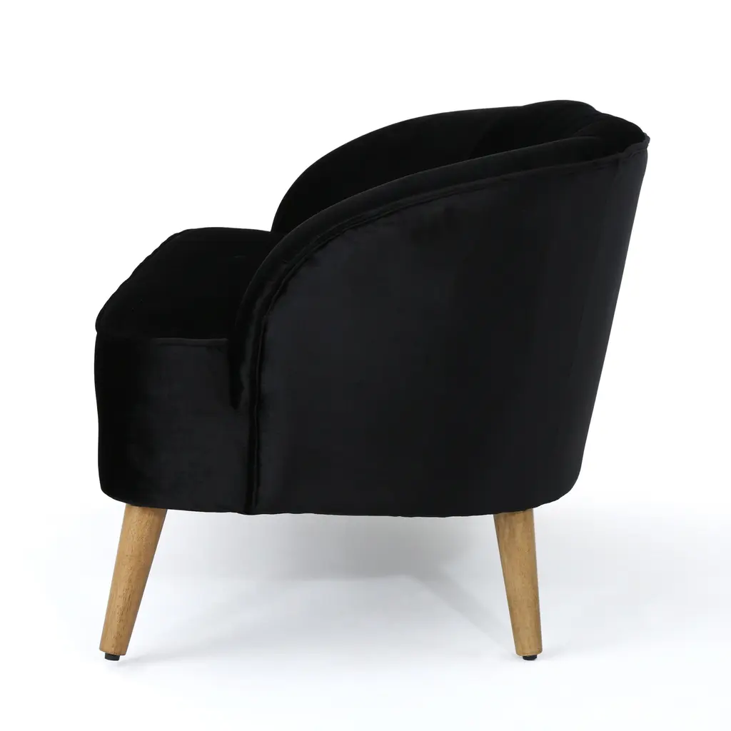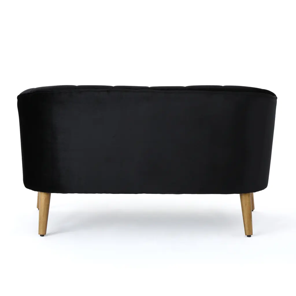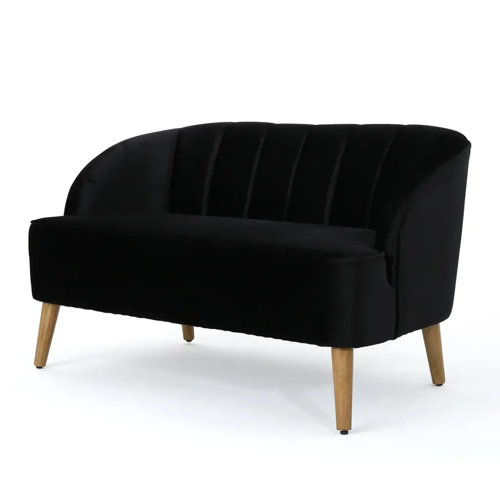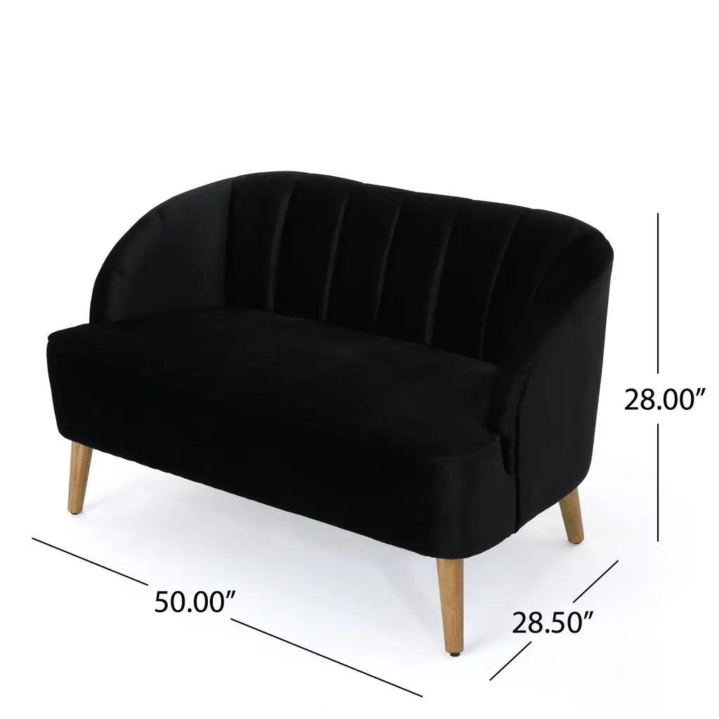 ▷This beautiful, shell-backed loveseat is the perfect complement to your existing living room furniture. Our loveseat takes a gorgeous classic look and brings an impressive modern twist, easily anchoring your decor in an atmosphere of elegance. Ideal for watching television, reading a good book, or just hanging out, this piece is expertly upholstered from the highest quality velvet and set on gorgeous rubberwood legs. ▷Birch wood frame ▷Polyester velvet upholstery ▷Channel-tufted back ▷Available in various color options ▷Angled birch wood legs ▷Tight seat cushion ▷Round arms ▷Seat Height: 19.5 inches high ▷Overall: 28 Inches high x 50 Inches wide x 28.5 Inches deep