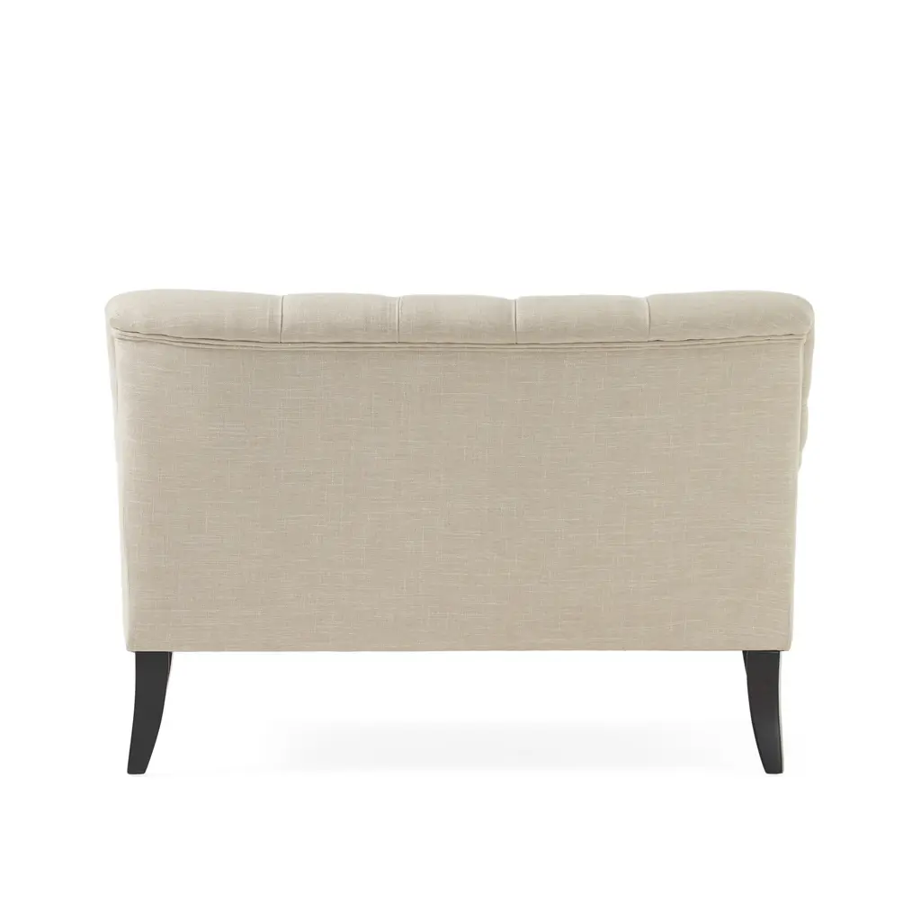 ▷Treat your interior space to a unique elemental twist that comes from charming French influences. With tasteful designs such as flared birch wood legs and a button-tufted backrest, this settee is ideal for any setting. Not only does this provide a luxurious look to your decor, but this also offers exceptional comfort with its diamond stitching and plush seating. Ideal for small spaces, this piece will easily become a perfect statement piece in your home or apartment for years to come. ▷Upholstered Settee ▷Dark Brown Leg Finish ▷Solid Birch Legs ▷Tufted Backrest ▷Assembly Required, Tools Provided ▷Dimensions: 29.75 inches deep x 44.25 inches wide x 30.50 inches high ▷Seat Dimensions: 19.25 inches deep x 44.00 inches x 17.00 inches high