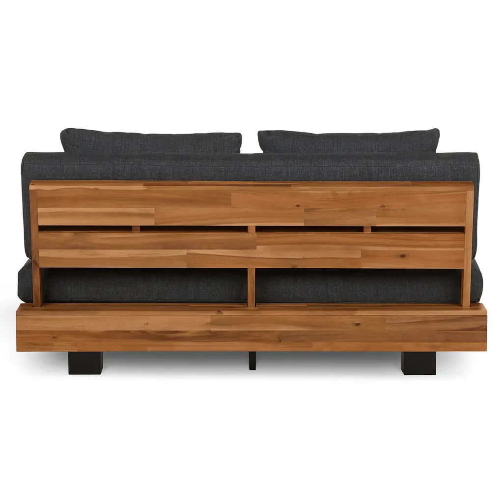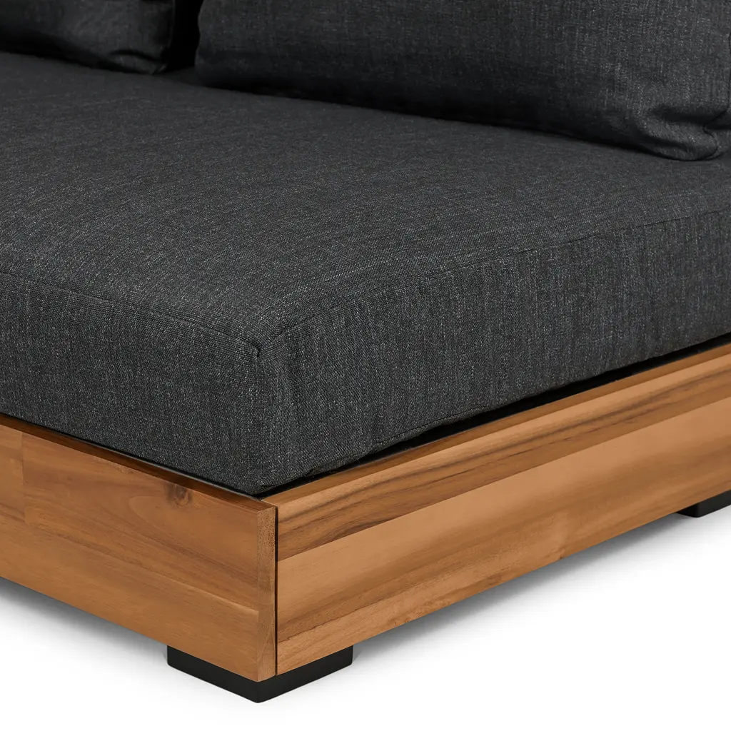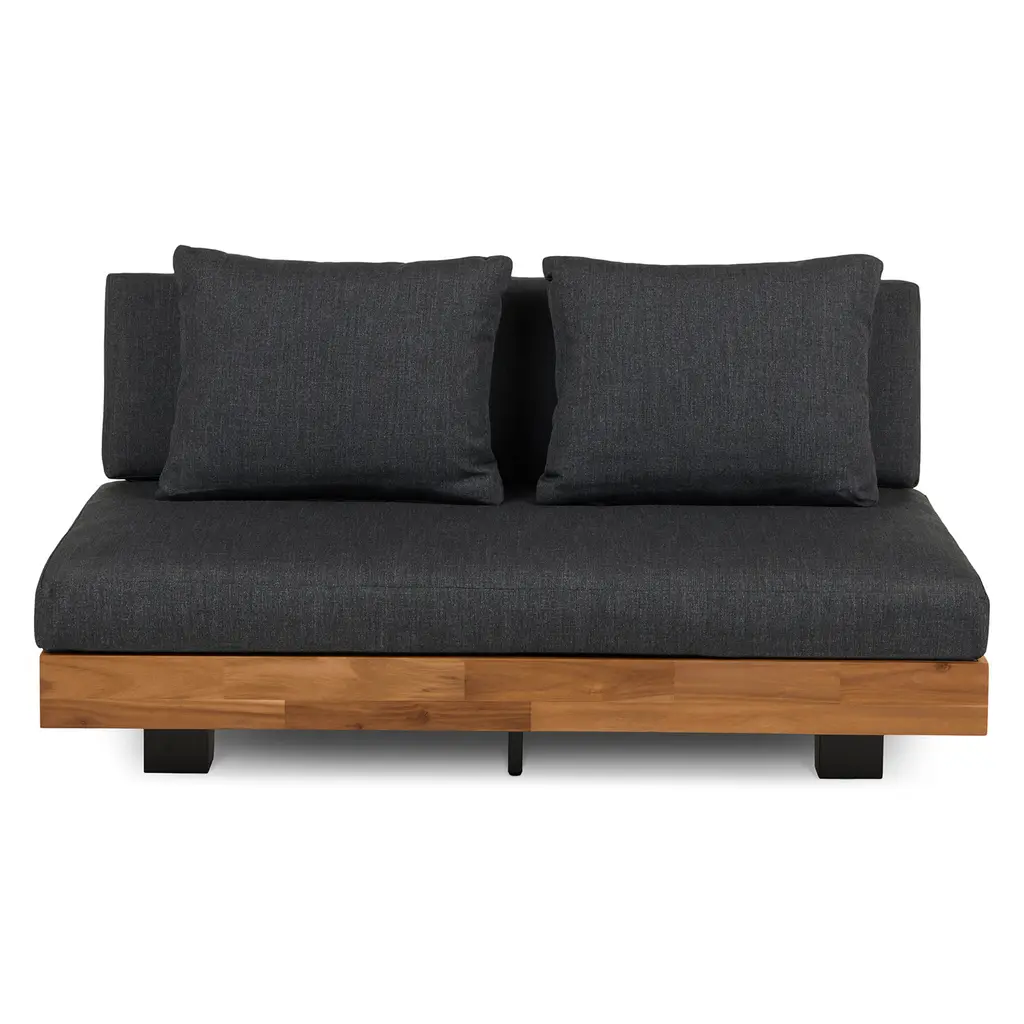 Stay a while. The Lubek loveseat is built from a solid acacia wood base. The sofa is set close to the ground, encouraging you to really sink into those weather-resistant cushions. Dark cushions and super clean lines add to the Lubek’s modern look, while the warmth of the acacia wood makes the sofa easy to pair with any backyard set up. We call this look “low key modernism."