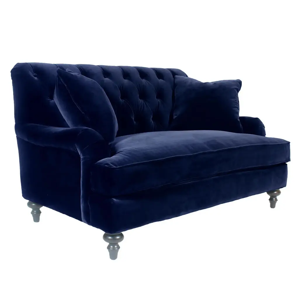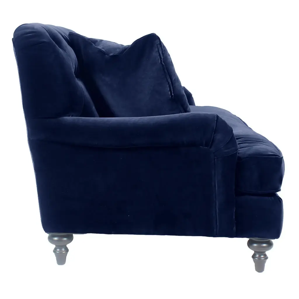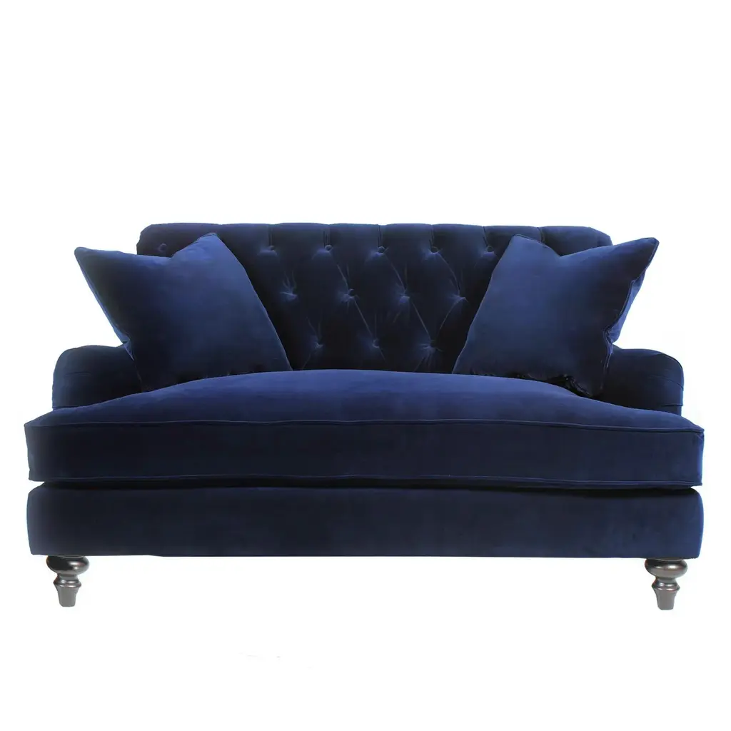 Deep button tufts, English arms, and beautifully turned legs give the handcrafted pieces in our Lucas Collection timeless elegance, while sturdy kiln-dried hardwood frames, ample padding, and an eight-way hand-tied suspension system offer long-lasting comfort and support. Shown in Bella Velvet Ink.Exclusive to Z Gallerie.Available in over 15 fabrics. Custom Orders: Custom Furniture is manufactured especially for you, which is why we do not accept cancellations, exchanges, or returns.