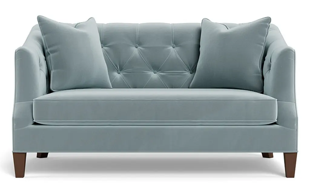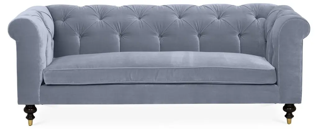 Deep button tufts, English arms, and beautifully turned legs give the handcrafted pieces in our Lucas Collection timeless elegance, while sturdy kiln-dried hardwood frames, ample padding, and an eight-way hand-tied suspension system offer long-lasting comfort and support. Shown in Bella Velvet Ink.Exclusive to Z Gallerie.Available in over 15 fabrics. Custom Orders: Custom Furniture is manufactured especially for you, which is why we do not accept cancellations, exchanges, or returns.