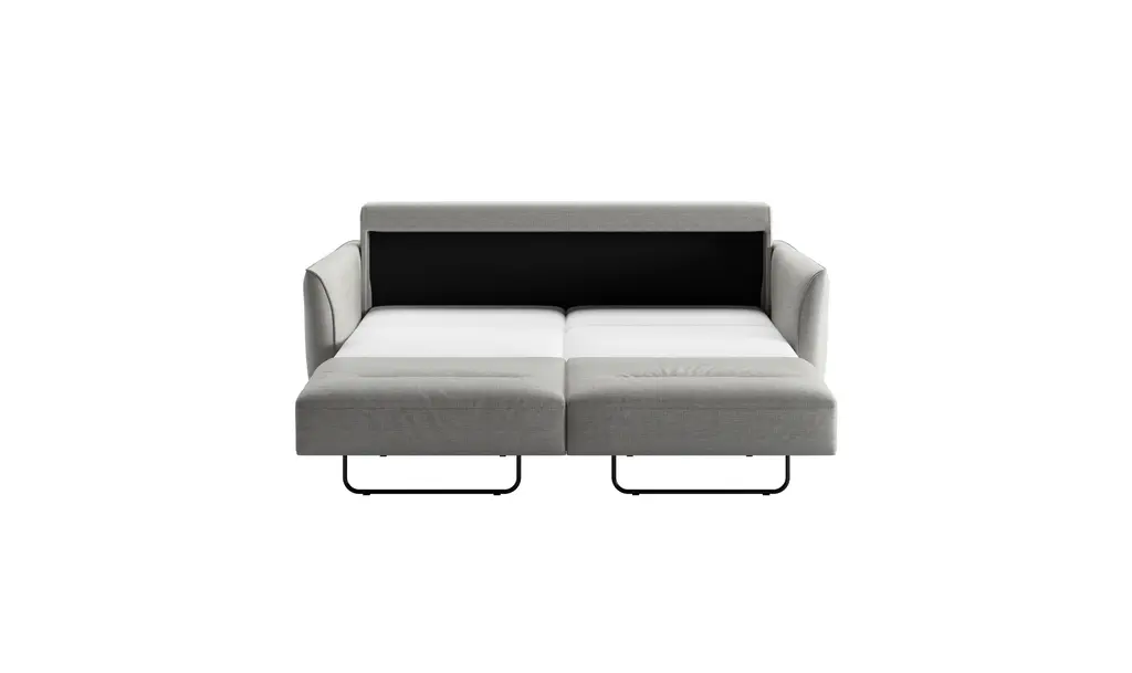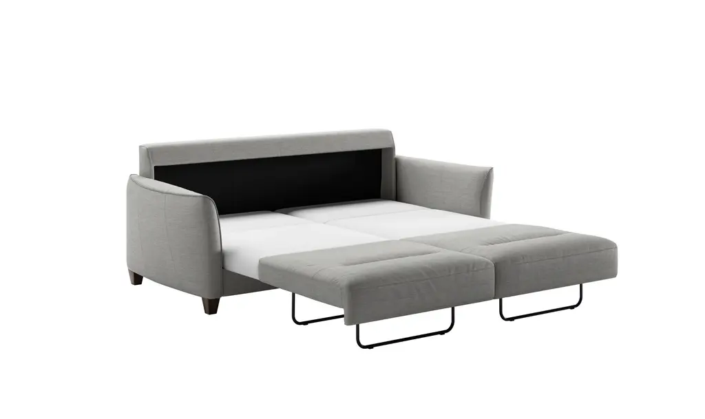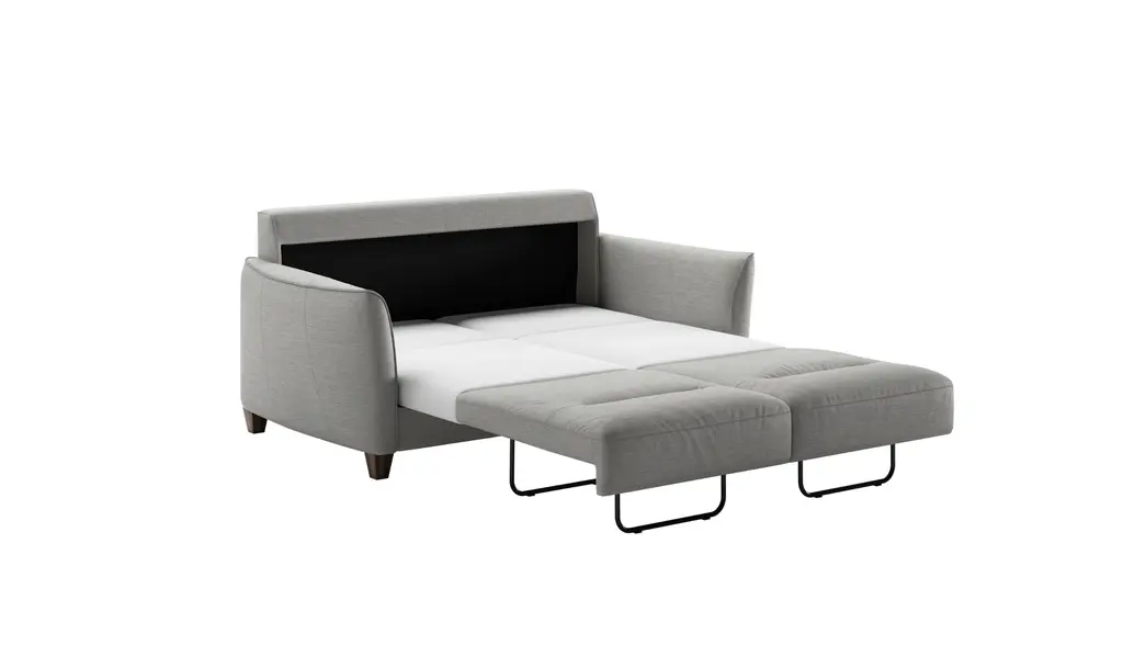 The Harold Fabric Dual Motion Loveseat Sleeper by Luonto unites comfort and versatility. With its innovative and unique features, the Harold Loveseat Sleeper will make your space visually appealing and functional. With the Harold loveseat sleeper, switching from a cozy seat to a luxurious bed has never been easier. Its dual-motion mechanism makes you effortlessly convert it into a comfortable sleeper in seconds. Say goodbye to cumbersome sofa beds and hello to simplicity.Harold's high backrest is specially designed to provide excellent neck support. Whether you're reading a book, watching a movie, or enjoying a peaceful nap, Harold has your back. Tucked within this loveseat's frame is a 5-inch (13cm) thick foam mattress that guarantees a quiet night's sleep. Enjoy the longevity and support of Harold's no-sag springs, ensuring that this loveseat sleeper remains a cherished part of your home for years.Harold's stone-colored upholstery perfectly complements its walnut finish wooden legs. It's a sophisticated addition to any living space. The fabric has a luxurious feel and durability. The track arms of the Harold loveseat sleeper add a contemporary flair to its design, making it a versatile choice for various interior styles. The HR foam seat cushions provide exceptional support and retain their shape, ensuring that every moment spent on Harold is pure bliss. The soft back cushions are loose, allowing you to customize your comfort and create your ideal seating experience. Choose between the Queen size, accommodating two, or the King size, accommodating three, for your seating and sleeping needs. Embrace the future of comfort and design with The Harold Fabric Dual Motion Loveseat Sleeper.