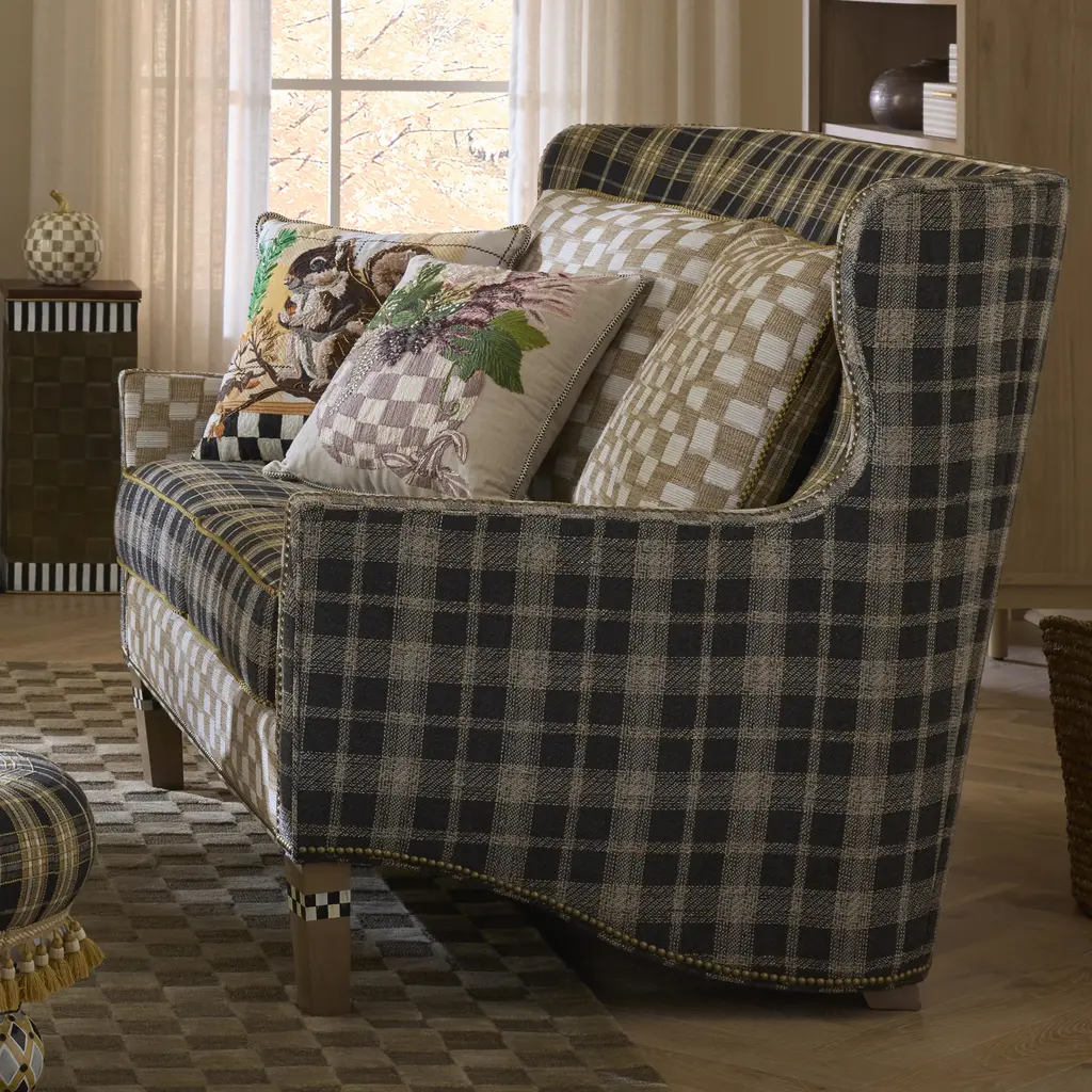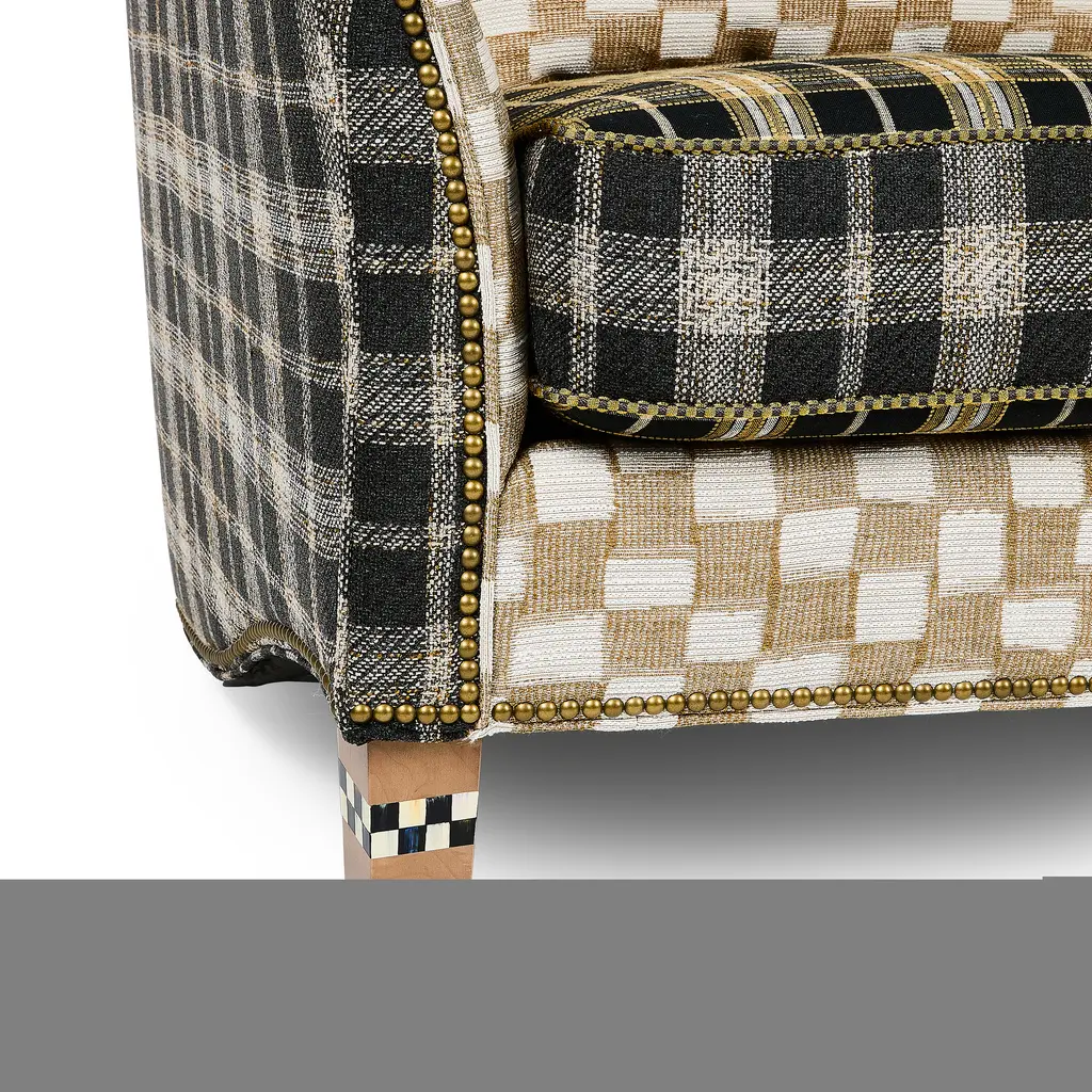 Enjoy classic charm with bold personality with the Mad for Plaid Loveseat, which features a daring mix of fabric, color, and patterns, with beige, honey yellow, black, and grey, all set atop hand-painted legs. It's the perfect piece for those who love statement-making furniture. Pairs well with pieces from our iconic Courtly Check collection.