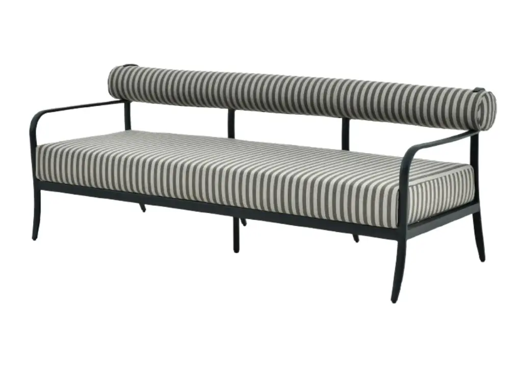Madelle Modern Grey Striped Sunbrella Black Aluminum Outdoor Loveseat - 57"