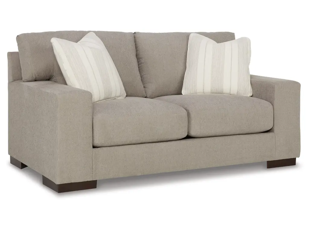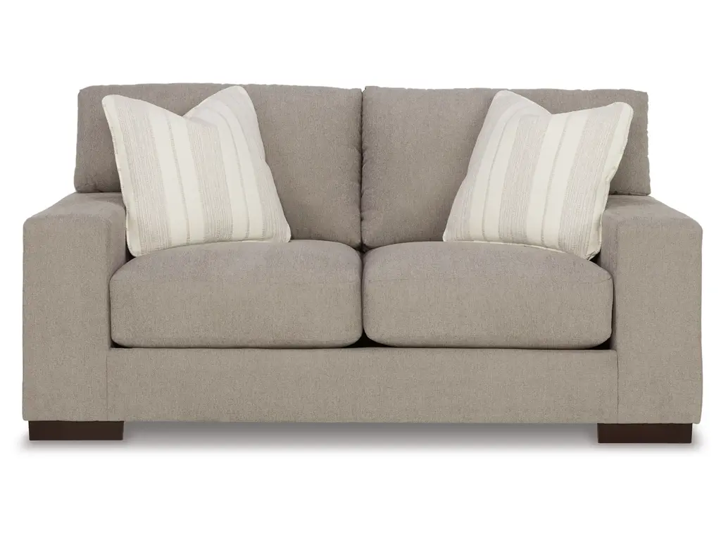 Classic comfort gets a mod twist with the Maggie loveseat. Its minimalistic approach and structured silhouette bring a clean-lined design element to your living room. Sink into the positively plush cushions while relaxing solo, or curl up with a glass of wine while hosting guests. And with neutral upholstery that suits both casual and contemporary spaces, this loveseat offers endless style possibilities.
