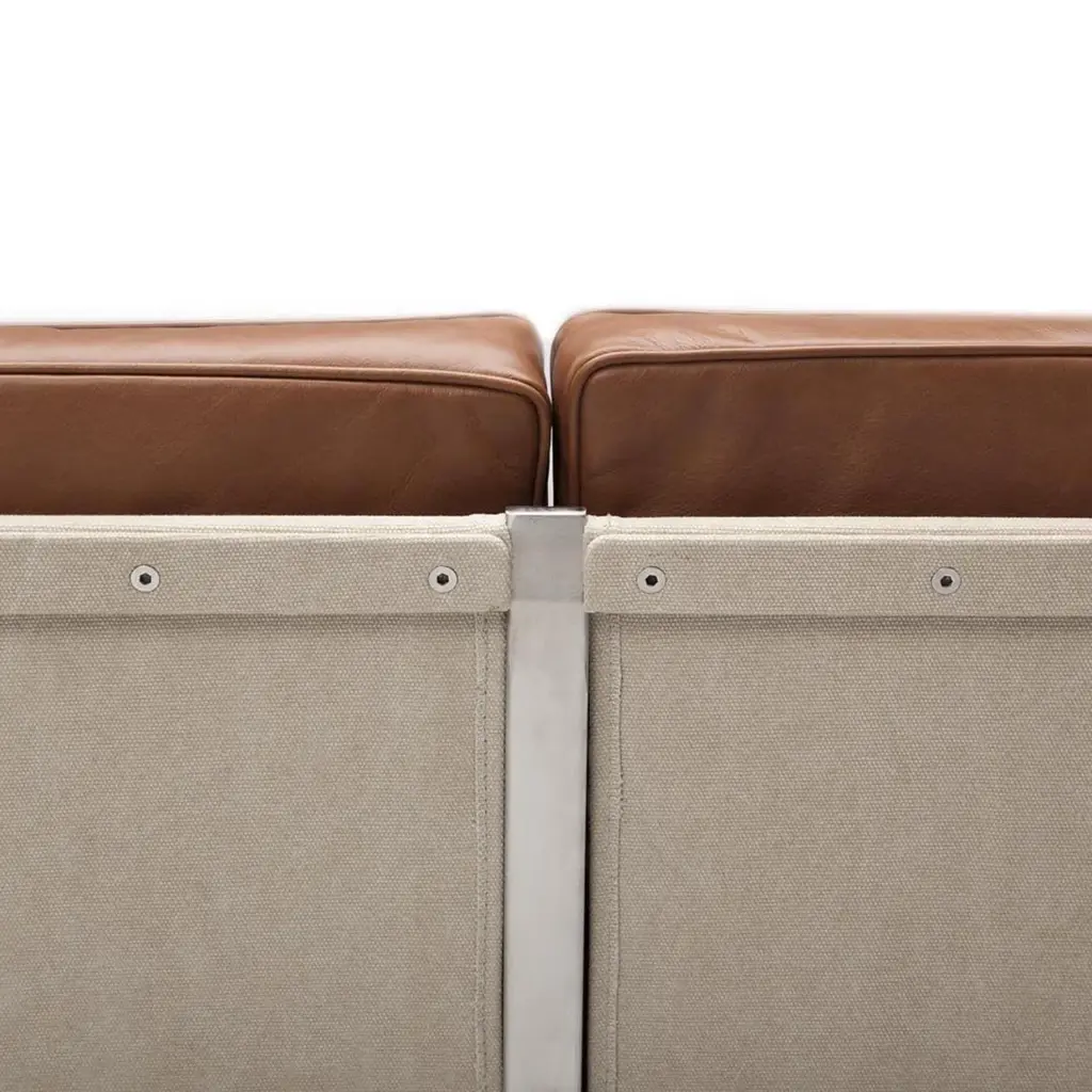 Inspired by the Bauhaus era where simple and clean shapes were in focus, the MAN Series is a collection of furniture with clean expression. Minimal materials and a functional design philosophy make the MAN Series aesthetically pleasing. The frame is made from stainless steel with a seat and back made of reinforced canvas. The cushions are upholstered with high quality leather and filled with fine down filling. The series consists of two- and three-seater sofas, lounge chair, daybed, chaise longue, coffee table and side table. The leather cushions come upholstered with various types of Premium or Vintage hides from Sorensen Leathers and the tables come with a fine black marble from the Iberian peninsula or a veiny green Indian marble.